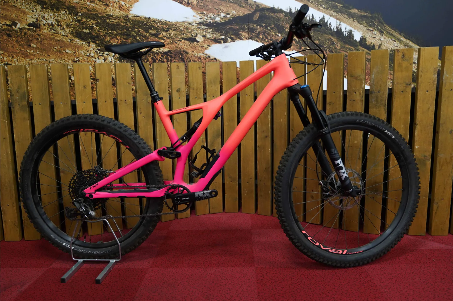 Ex Demo - Specialized Stumpjumper FSR Comp Carbon Women's Mountain Bike 2019 / Satin Lava / Acid Pink / Black in Large.