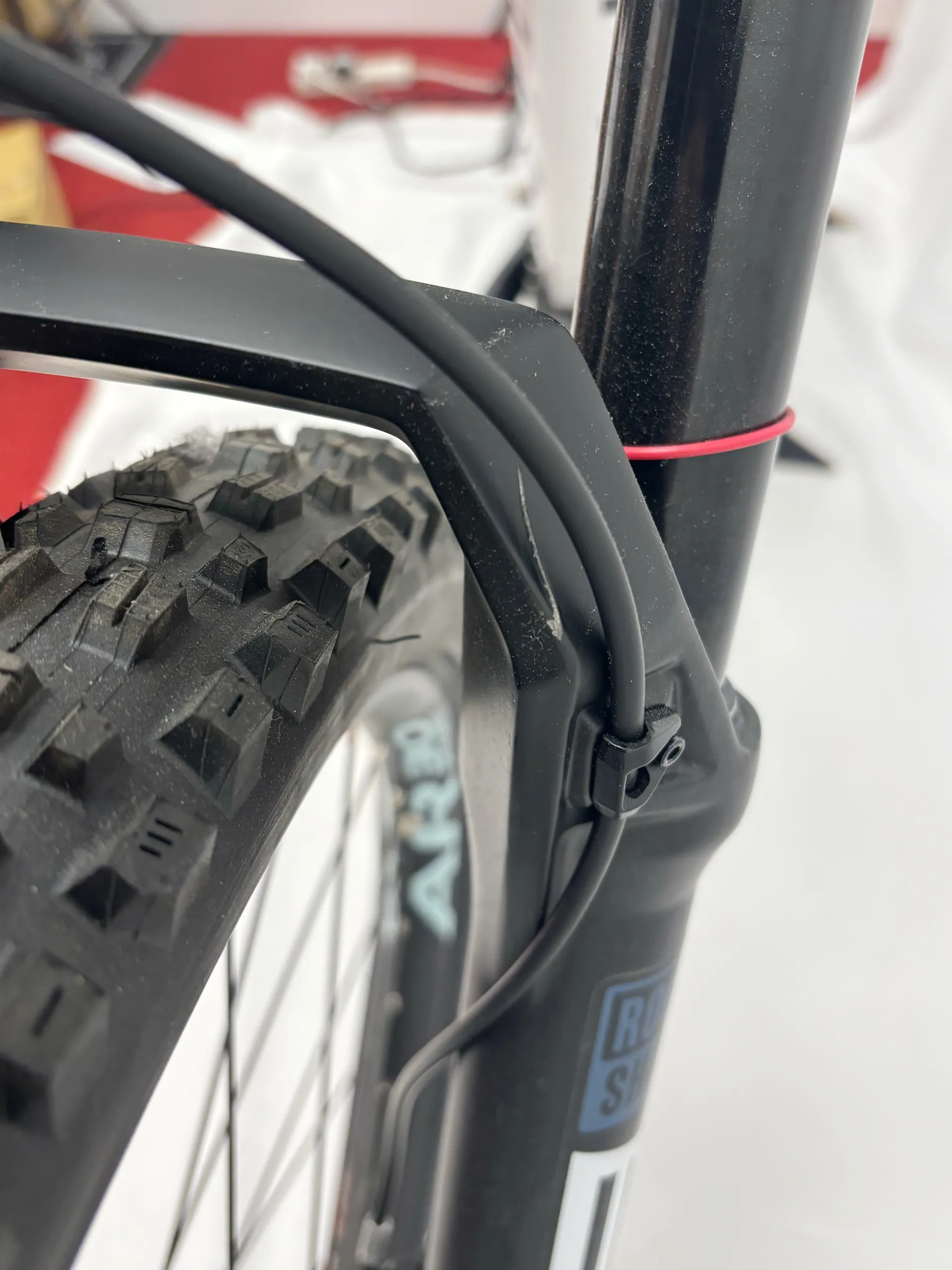 Damage Details: Bike is brand new with a scracth on the fork bridge next to where the cable runs. see photos.