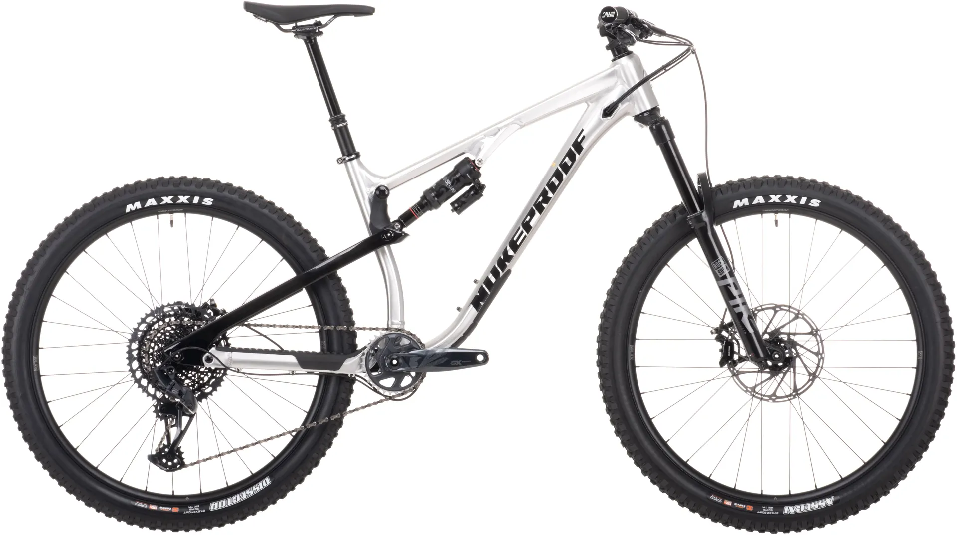 FrameNukeproof Reactor 275 Alloy, 140mm Travel, custom triple butted hydro-formed tube set for front triangle and chain stays, UD woven carbon fibre Seat stays, internal cable routing, internal cable routing, ISCG 05 mount, Enduro bearings, threaded 73mm BB, Boost 148mm rear axle spacing, 3D contoured rubber frame protection.