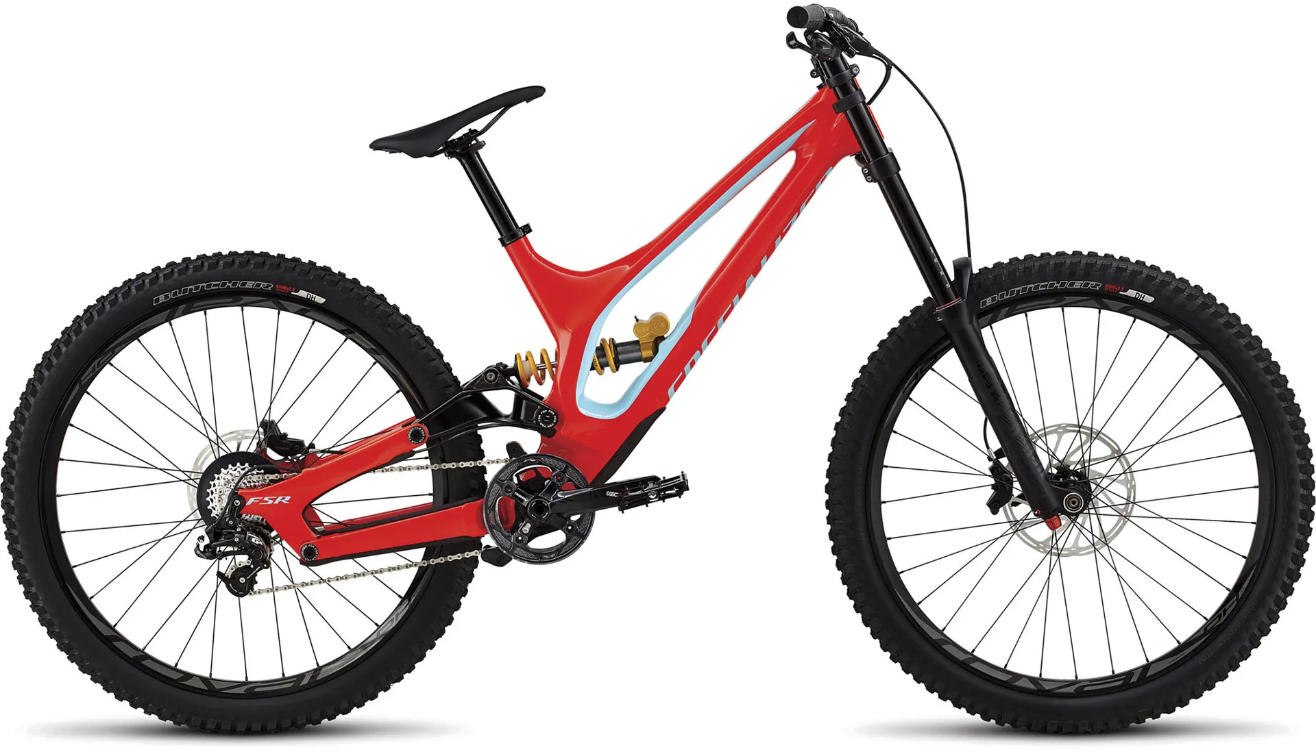 For suspension, the 2018 Specialized Demo 8 features 200mm up front via a RockShox BoXXer RC 650b and 200mm of travel at the rear controlled by the revolutionary Öhlins rear shock. Together, the combo ensures that you'll be able to rocket over any terrain with confidence. And when you add in a build kit consisting of SRAM's powerful Guide R brakes, a durable one-by SRAM drivetrain, and our legendary Butcher & Slaughter DH tires, you start get the picture of why the Demo 8 has won so many races.