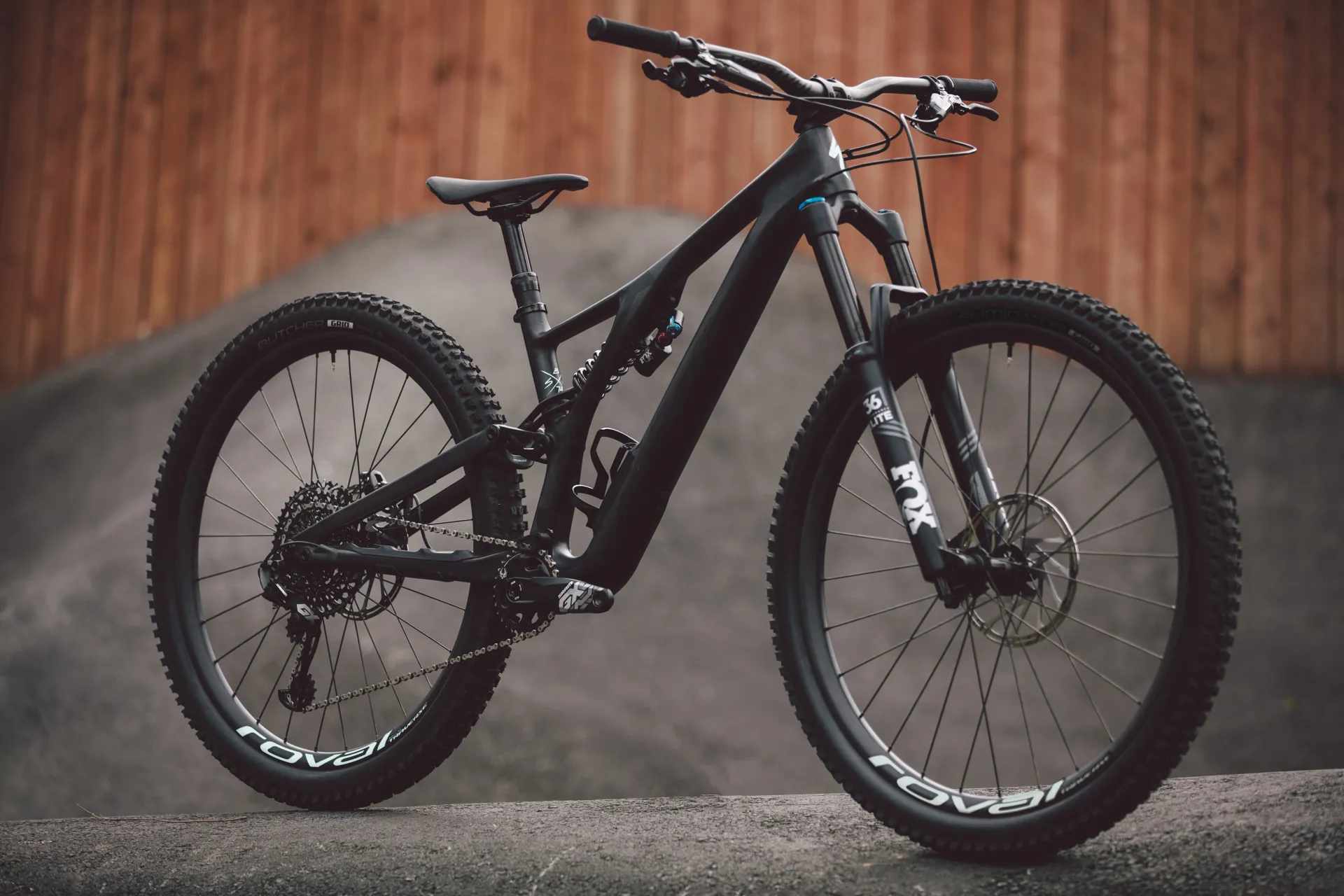 We kept the "get gnarly" motto going with the build kit of the Stumpjumper EVO Pro, spec'ing it with Fox front and rear suspension, bomb-proof Roval Traverse Carbon wheels, and a 12-speed SRAM GX Eagle groupset.
