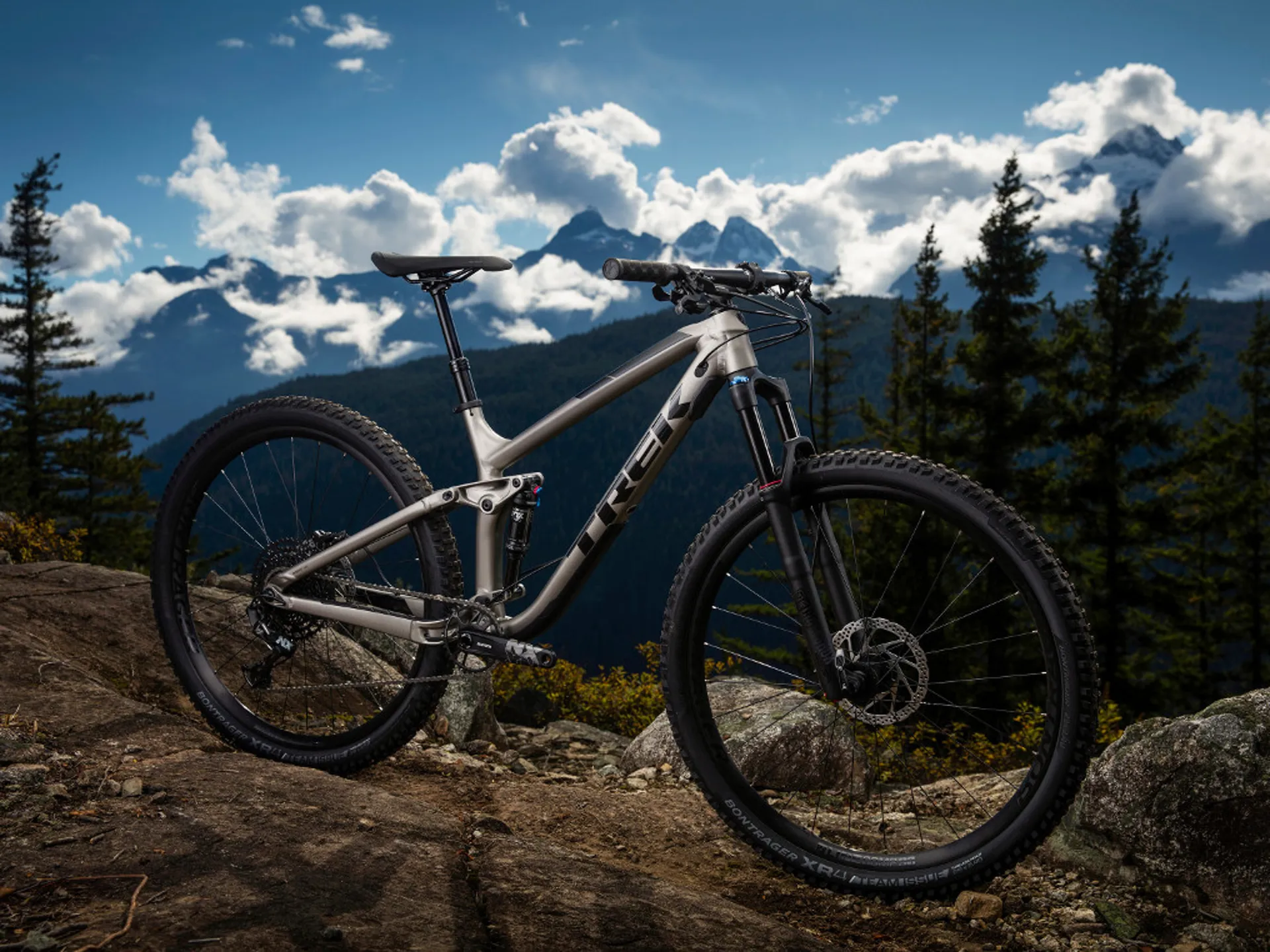 A capable and stiff Alpha Platinum Aluminium frame, 130 mm RockShox Reba RL fork and 130 mm of rear travel and a SRAM NX 1x12 Eagle drivetrain with a wide range of gearing for climbs. Plus, Bontrager Line Comp 30 wheels with a 54-tooth Rapid Drive rear hub for fast engagement and a Bontrager dropper post.