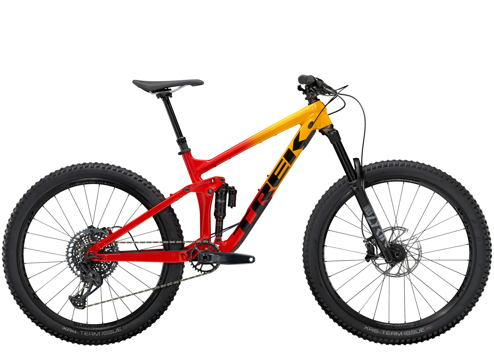 A light and tough aluminium frame, an upgraded 160 mm RockShox Super Deluxe fork with a plush DebonAir spring and Charger 2.1 RC damper that gives you more adjustment and control, and 150 mm of rear travel with an exclusive RE:aktiv rear shock. Plus, a SRAM GX Eagle 12-speed drive train with leg-saving lower climbing gears and Bontrager Line Comp 30 wheels.