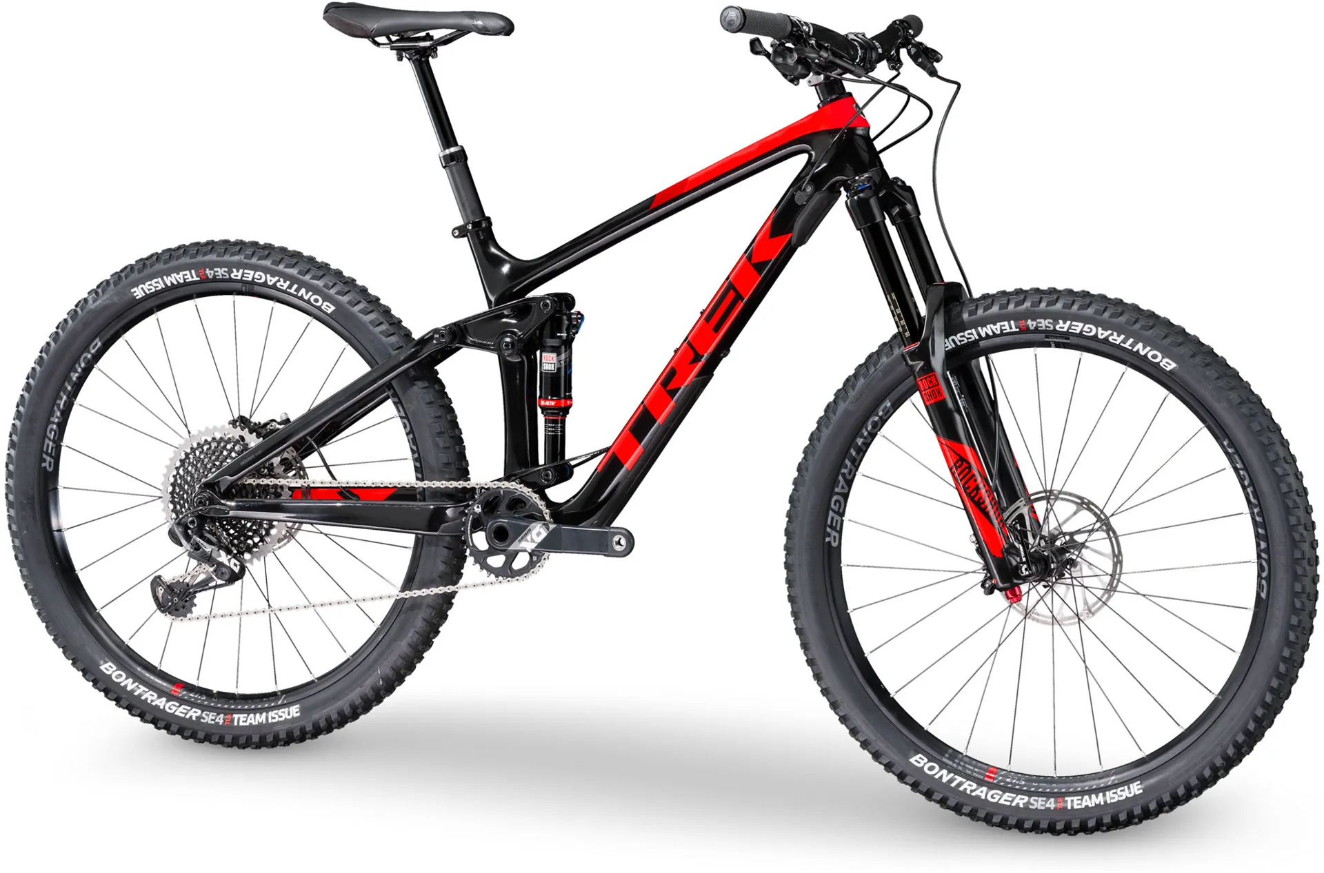 Trek's mountain-specific carbon fibre is tougher and lighter than any of its competition.High grade materials, a unique lay-up process & refined tube shaping help create a ride that maximises strength whilst minimising weight. Features the all new Straight Shot frame design with Knock Block, creating the perfect stiffness-to-weight ratio.