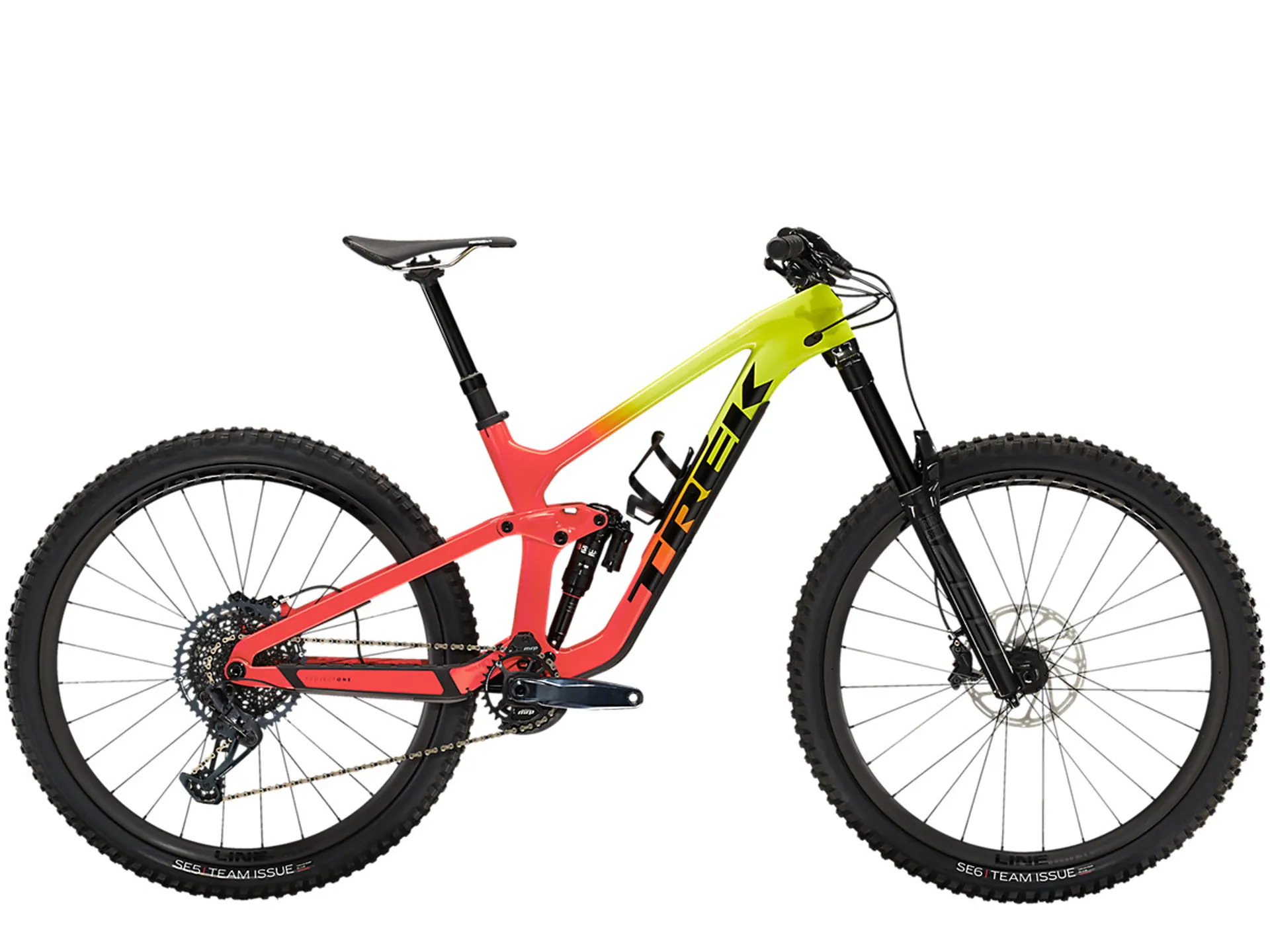 A full OCLV Mountain Carbon frame with 160 mm of travel and a RockShox Super Deluxe Ultimate shock with an updated Thru Shaft damper, plus a RockShox ZEB fork with extra-beefy 38 mm stanchions. A SRAM GX Eagle drivetrain with a 10-52 cassette and Bontrager Line Elite 30 carbon wheels with a 108-tooth Rapid Drive hub for quick acceleration when you need it most.