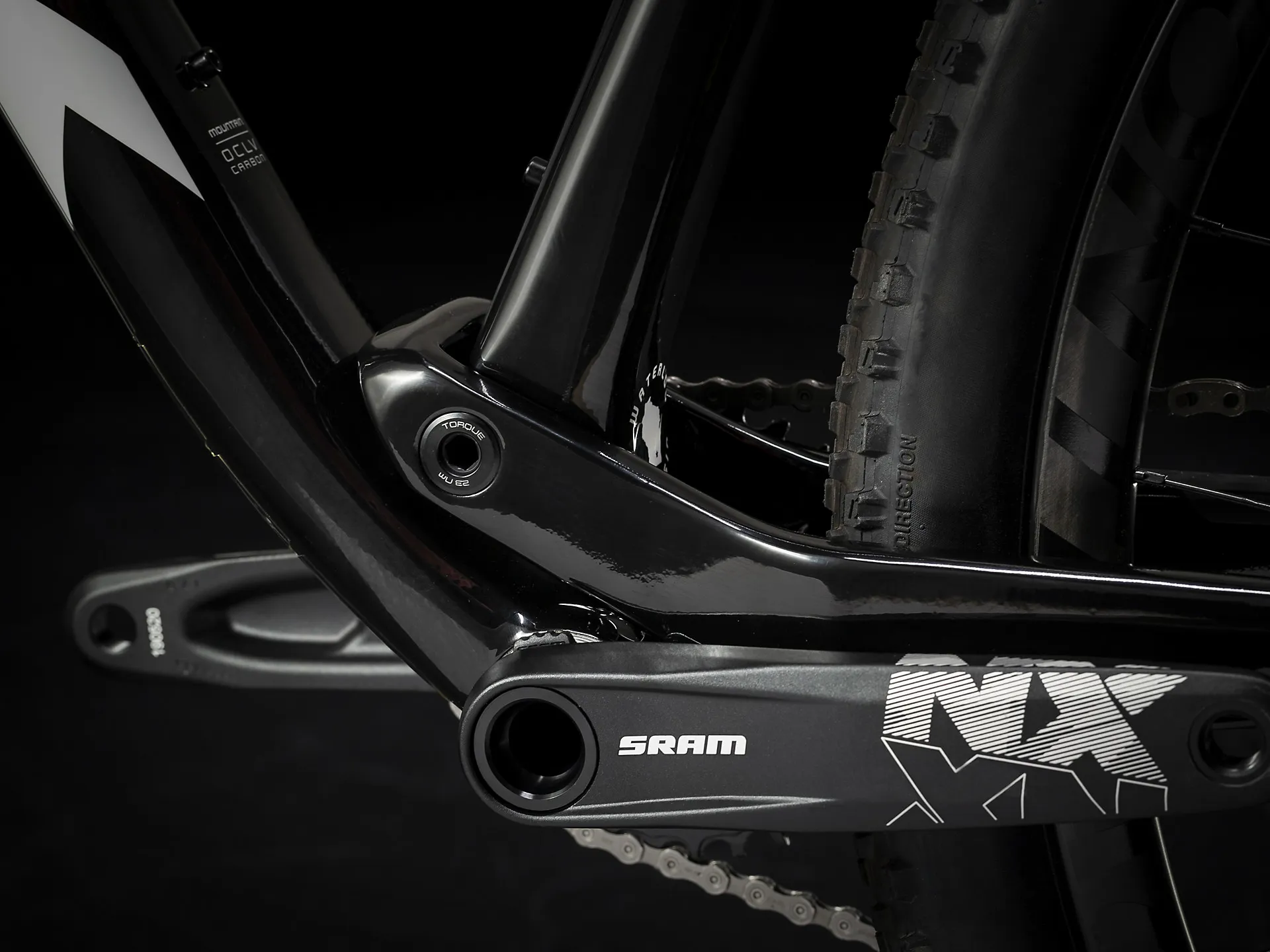 An ultra-lightweight, full OCLV Mountain Carbon frame with 60 mm of travel, a 100 mm RockShox Reba RL fork and Trek's exclusive lightweight IsoStrut FOX Performance shock designed specifically for Supercaliber. Plus, a SRAM NX Eagle 1x12 drive train and Bontrager carbon wheels.