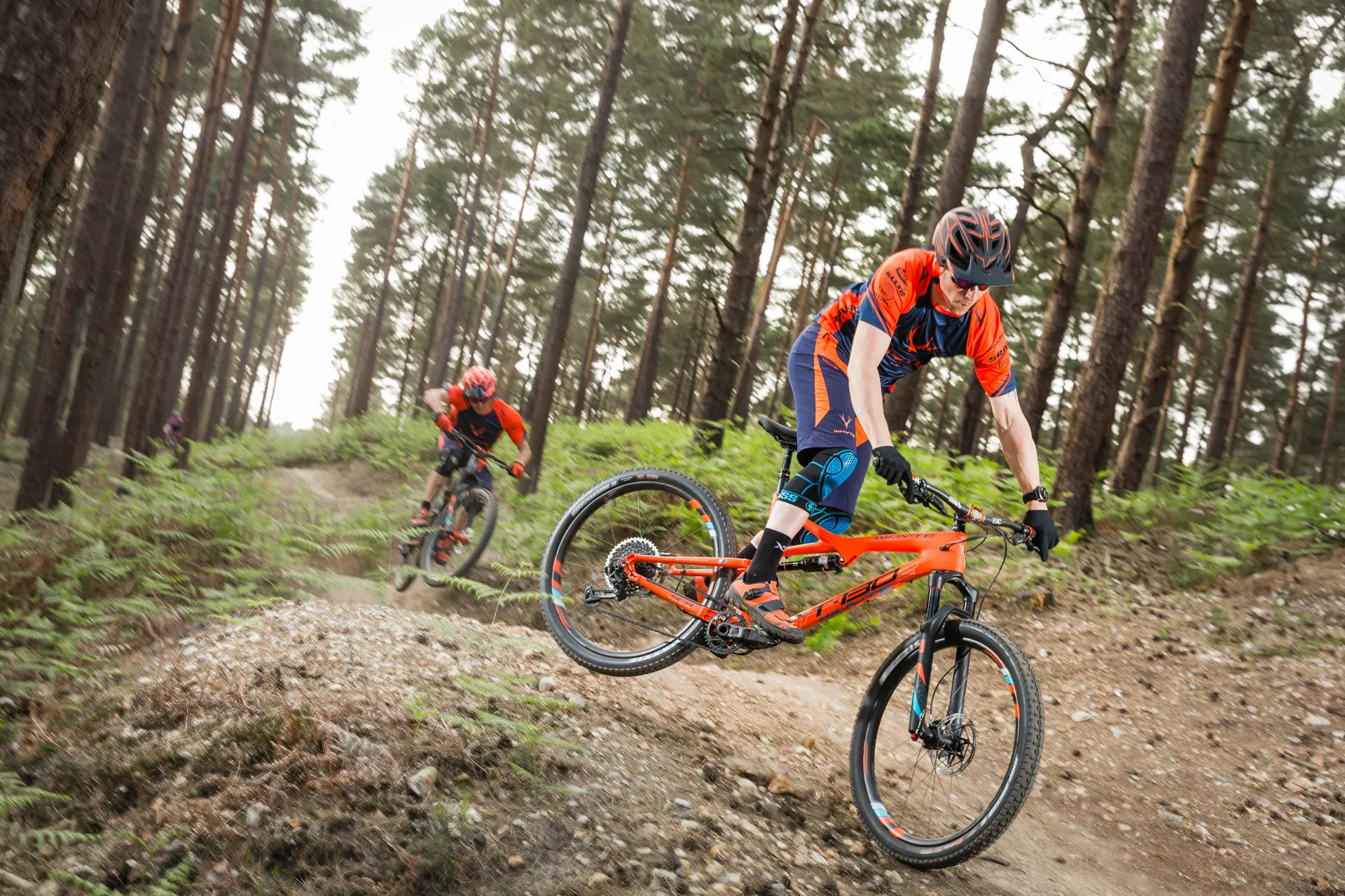 Colour: Matt Orange with Black/Blue Frame: Uni-directional Multi Monocoque Front Triangle with internal cable routing, Tapered Head Tube and Intergrip seat clamp with alloy symmetrical SCR rear Triangle, 148mm Boost Dropouts