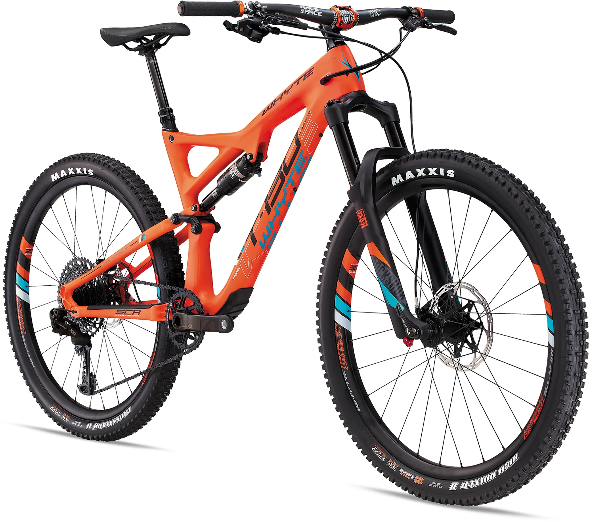 Saddle: Whyte Custom dual density, triple panel design Handlebar: RaceFace SIXC Carbon, 760mm wide, 20mm rise