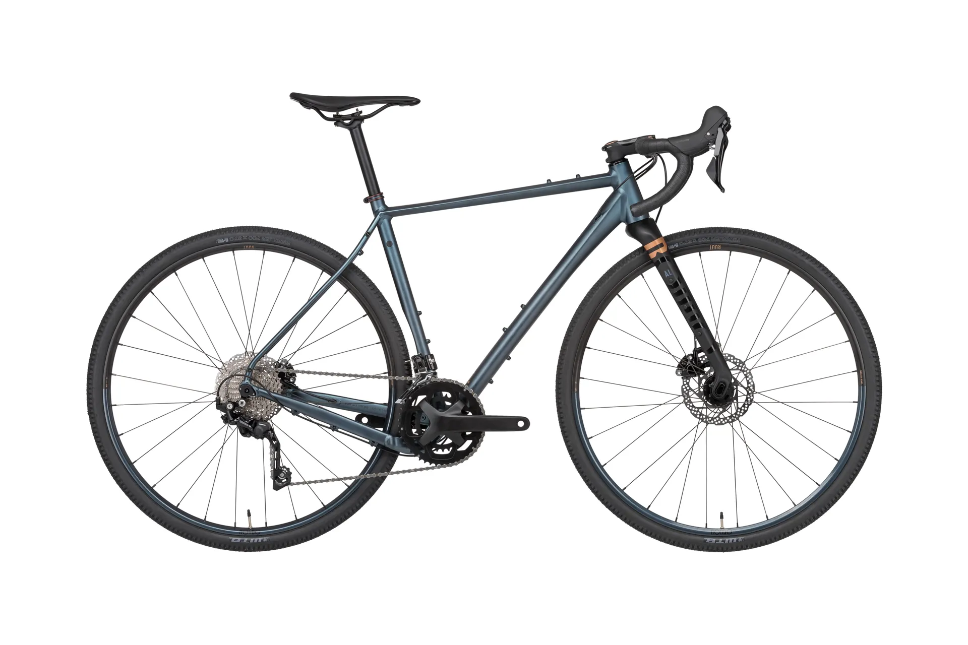 The RUUT AL1 2x is a more road-friendly version of the RUUT and built for beginner gravel riders. This model is an aluminium framed all rounder, perfect for discovering new places on your doorstep. Capable of going the distance thanks to its wide range 2x10 Shimano GRX drivetrain. The RUUT AL1 2x has fast-rolling tyres for ultimate mixed surface riding. Ideal for long distances, bikepacking and winter training.