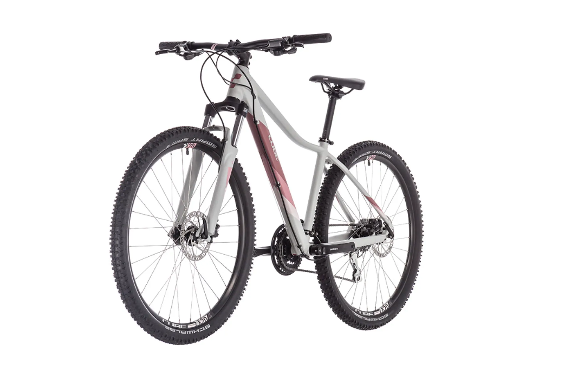The Cube Access EAZ Womens 29er Mountain Bike 2019 equipped with powerful, easily-controllable Tektro hydraulic disc brakes and grippy, easy-rolling Schwalbe Smart Sam tyres.