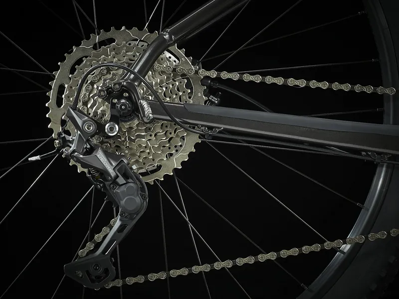 The wide-range cassette still gives you all the gears you need for big climbs and steep descents. Plus a suspension fork with a lever that lets you easily lock the suspension so you don't waste energy on smooth terrain.