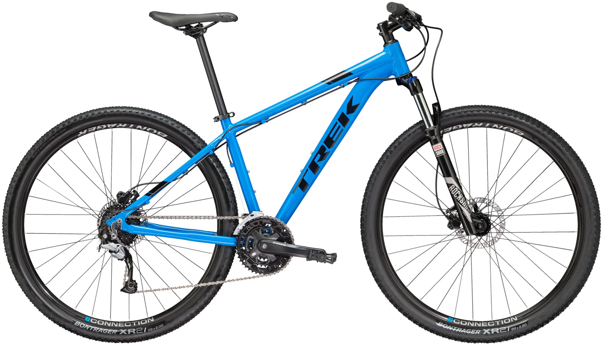 Tires Bontrager XR2, 29x2.20" front, 29x2.00" rear (13.5 & 15.5: 27.5x2.20")
