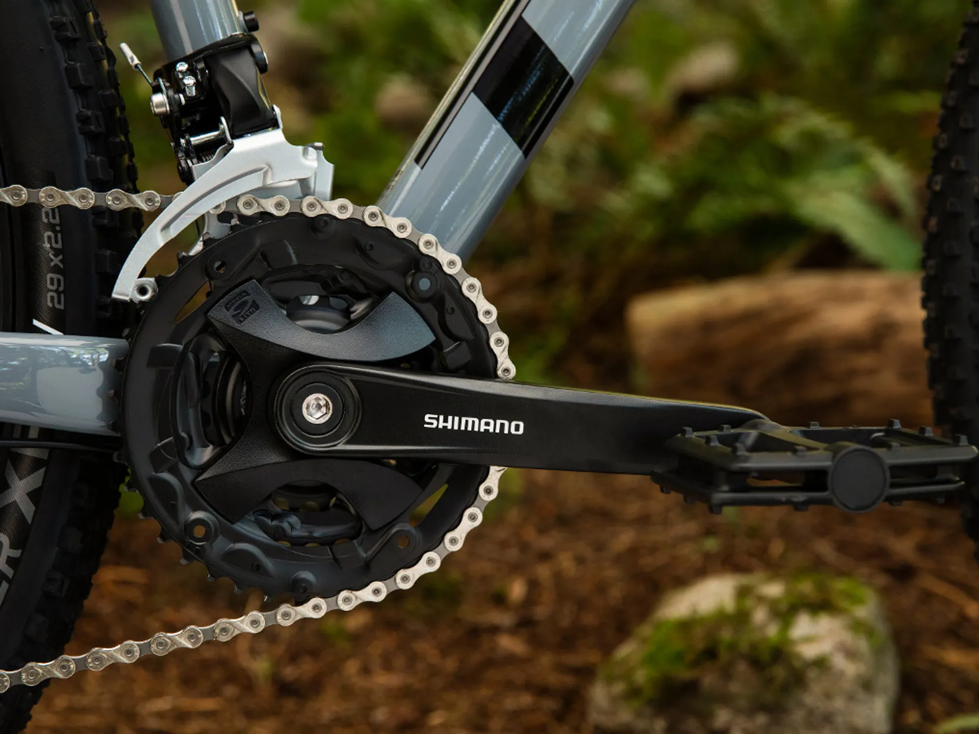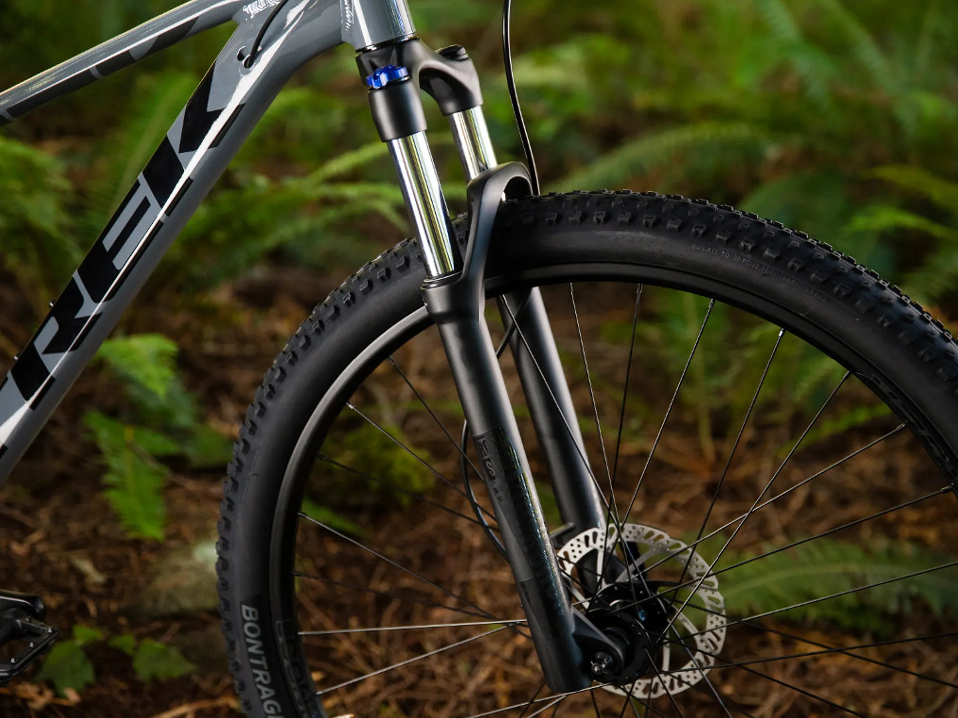 • Bontrager Connection rims with Formula hubs, paired to Bontrager XR2 29" tyres (13.5" & 15.5" frame sizes have 27.5" wheels)