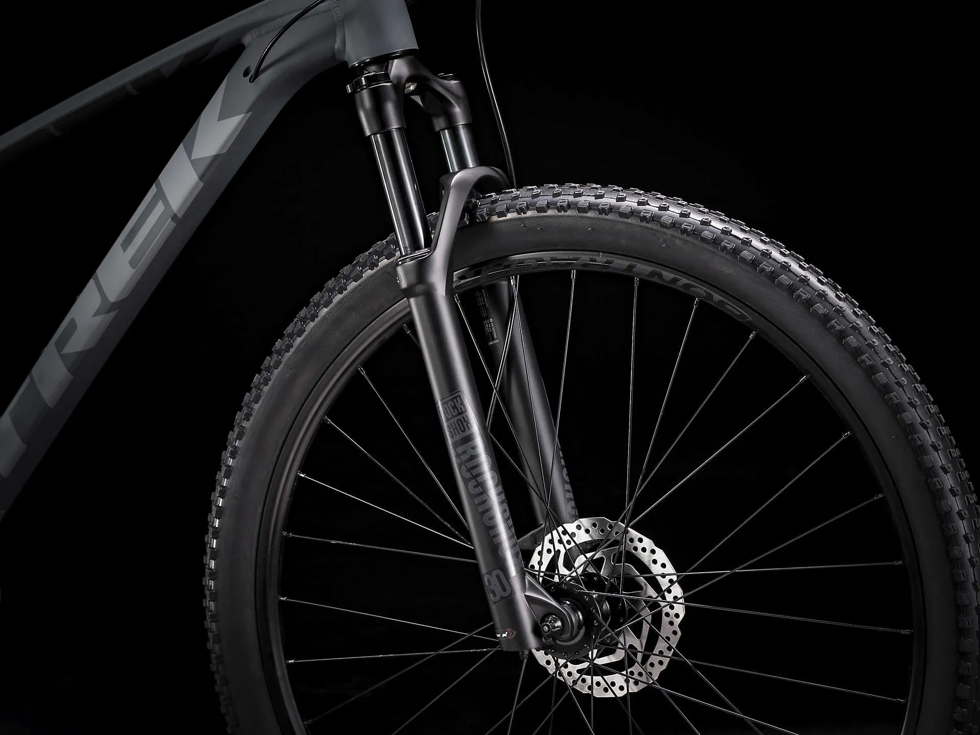 Fork RockShox 30 Silver, Solo Air spring, rebound adjust, TurnKey hydraulic lockout, tapered steerer, 46mm offset for 29" wheel, 100mm QR, 100mm travel