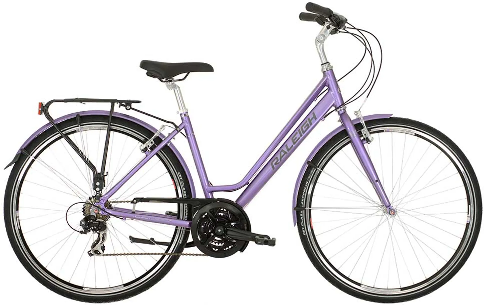 Extras mudguards - set: Raleigh colour matched composite. chainguard: AXA lite line. rear carrier: Alloy Colour matched. carrier strap: elastic strap black