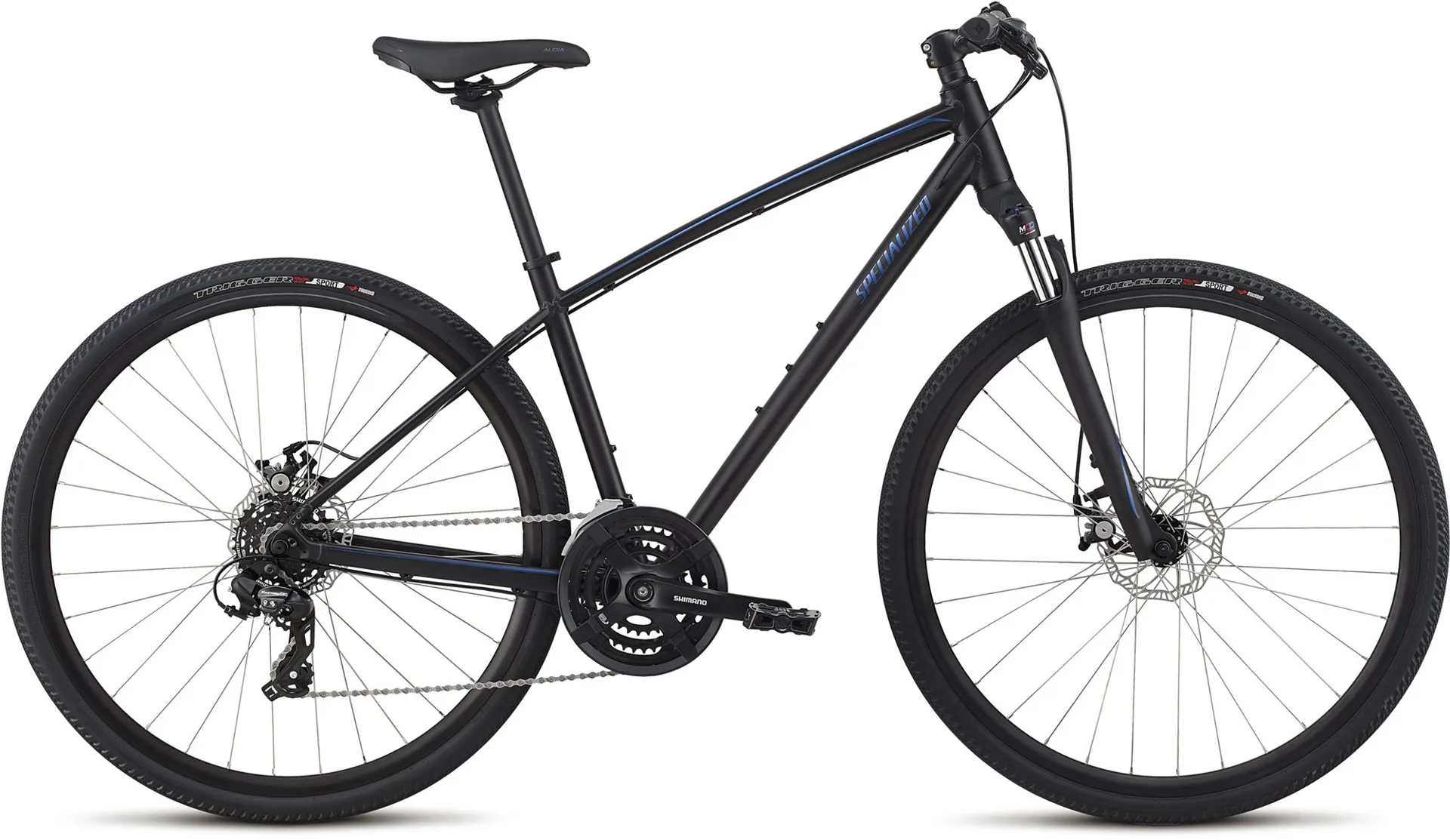 Frame Specialized A1 premium aluminum, Fitness Geometry, fully-manipulated butted tubing, internal cable routing, flat mount disc, rack and Plug + Play fender mounts