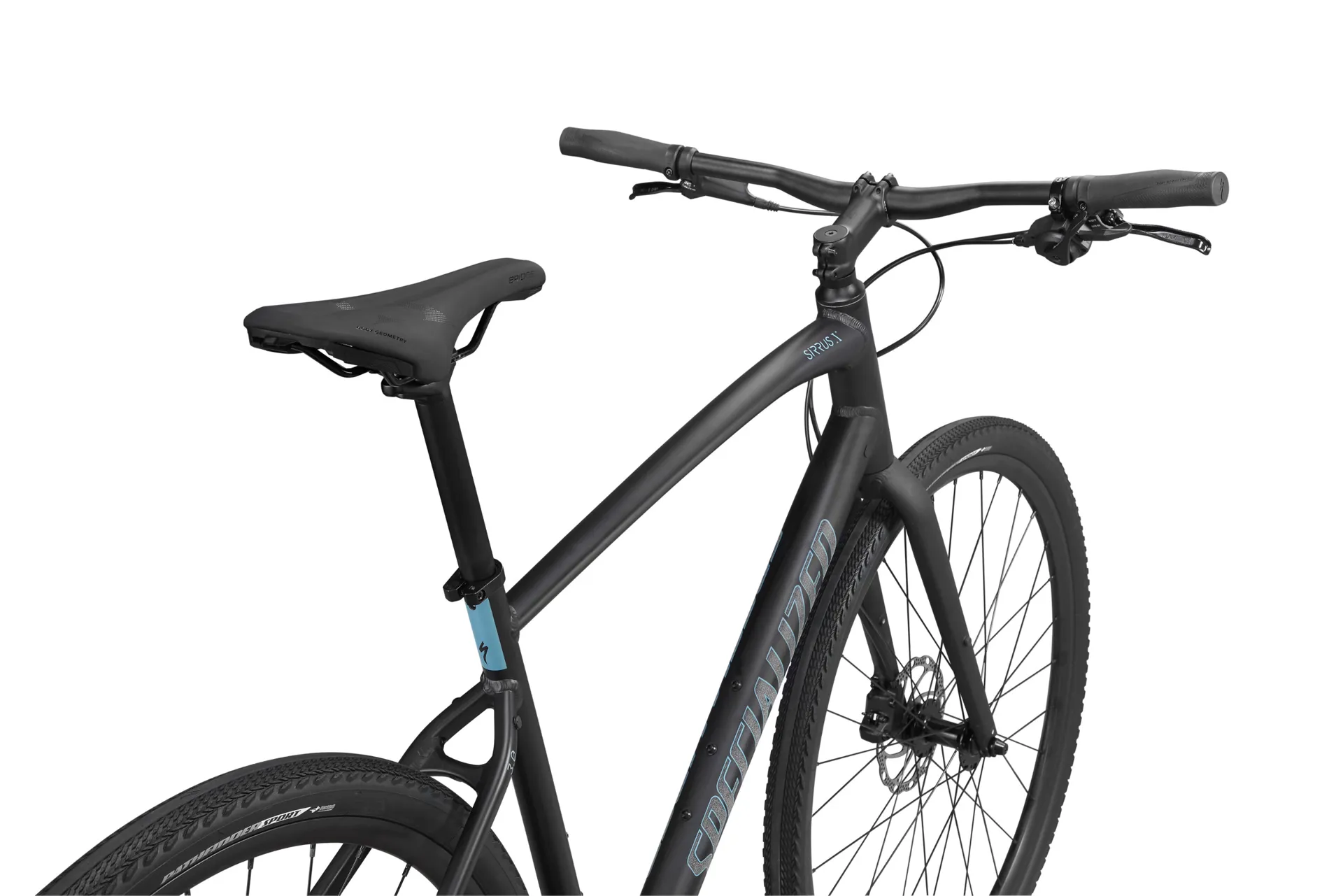 Specialized A1 Premium Aluminum, Fitness Geometry, butted tubing, internal cable routing, flat-mount disc, quick-release, Plug + Play rack/fender mounts