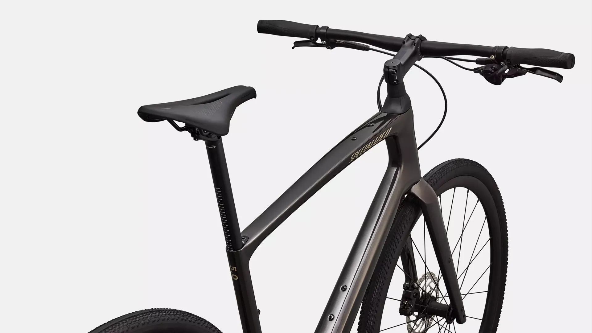 • Future Shock 1.5, Specialized’s unique suspension design, is placed inside the headtube to prevent harsh frequencies caused by bumps in the road from reaching the handlebars.