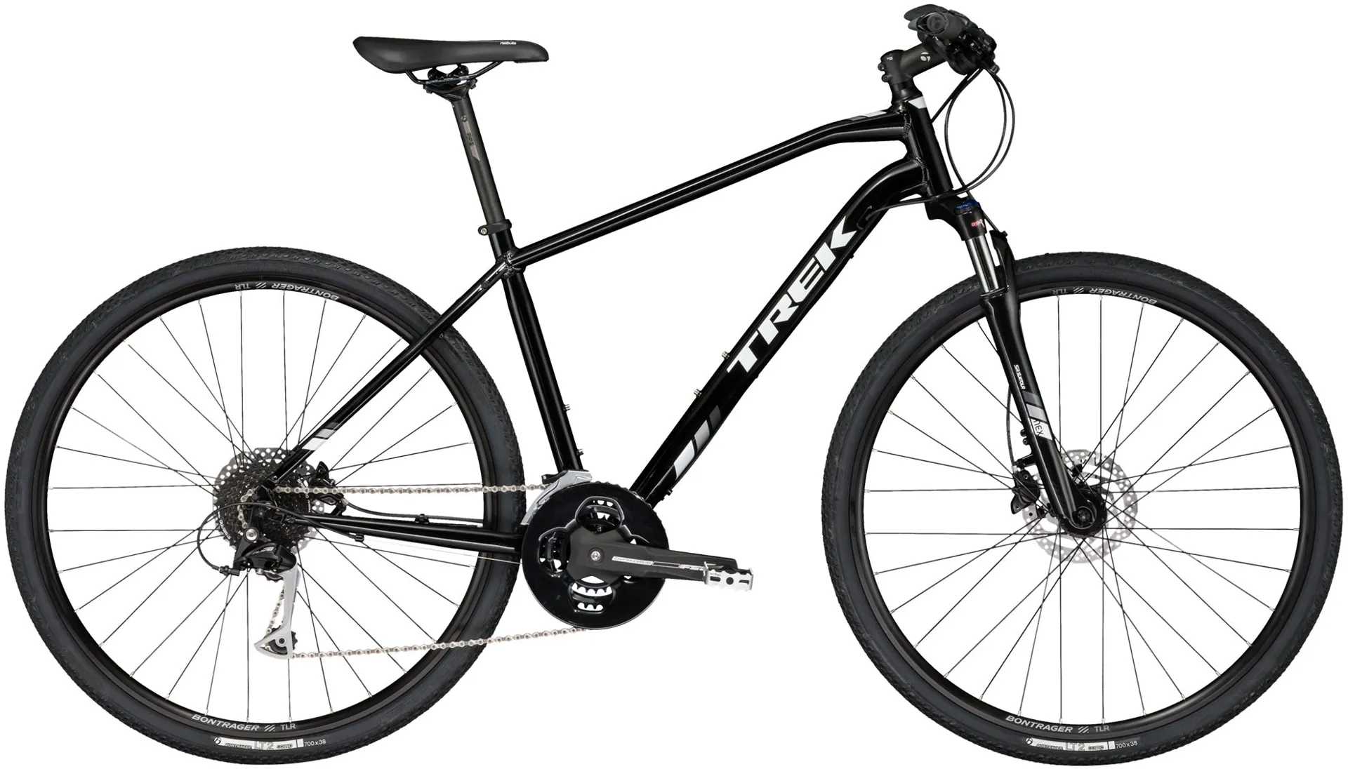 Dual Sport geometry is fast, sporty, and all-day comfortable, complete with ergonomic features that are perfect for the frequent rider. Fast & efficient on the pavement, capable & confident on dirt thanks to the Bontrager LT2 tyres, the Trek DS 2018 also comes complete with rack and mudguard mounts.