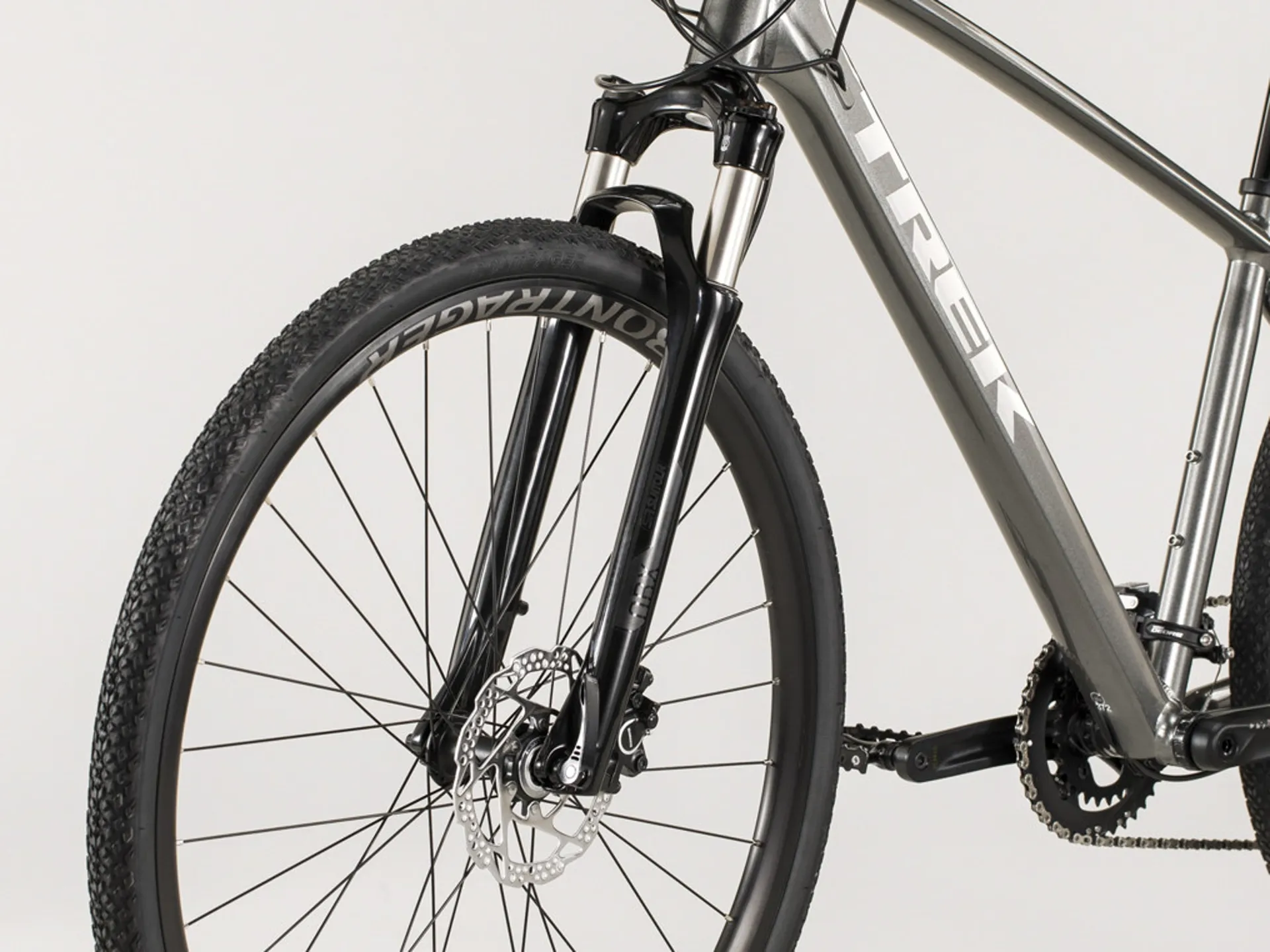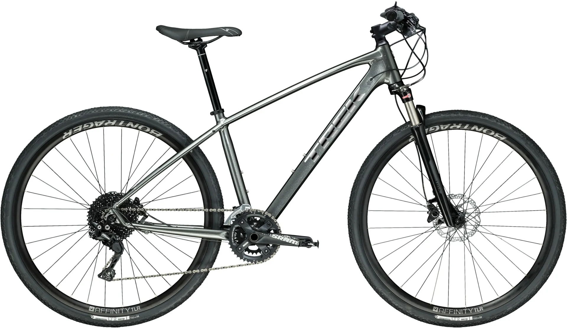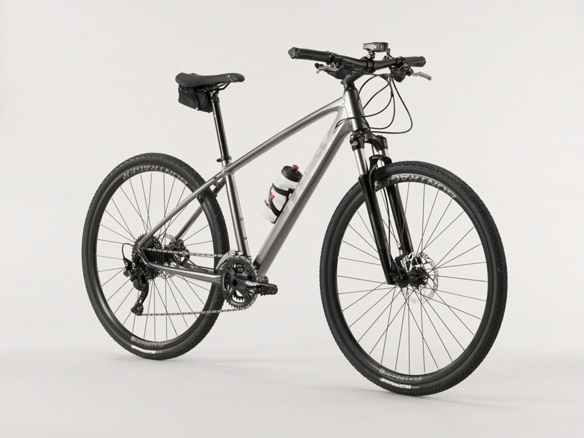 Build highlights included in a lightweight Alpha Gold Aluminium frame, an ATB-rated SR Suntour NRX fork with a remote lockout, a 2x10 Shimano SLX mountain drivetrain, Shimano hydraulic disc brakes for ultimate stopping power in all conditions, Tubeless Ready rims, puncture-resistant Bontrager LT2 Comp Hard-Case Lite tyres, rack and mudguard mounts, DuoTrap S compatibility and a Blendr stem for easy accessory integration.