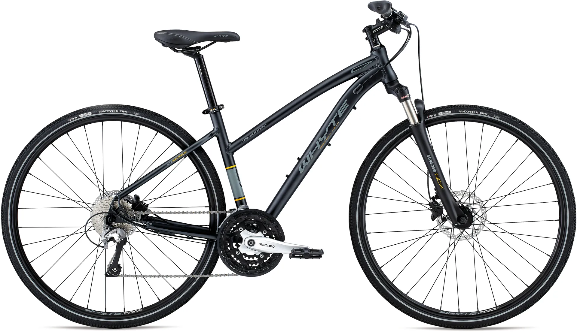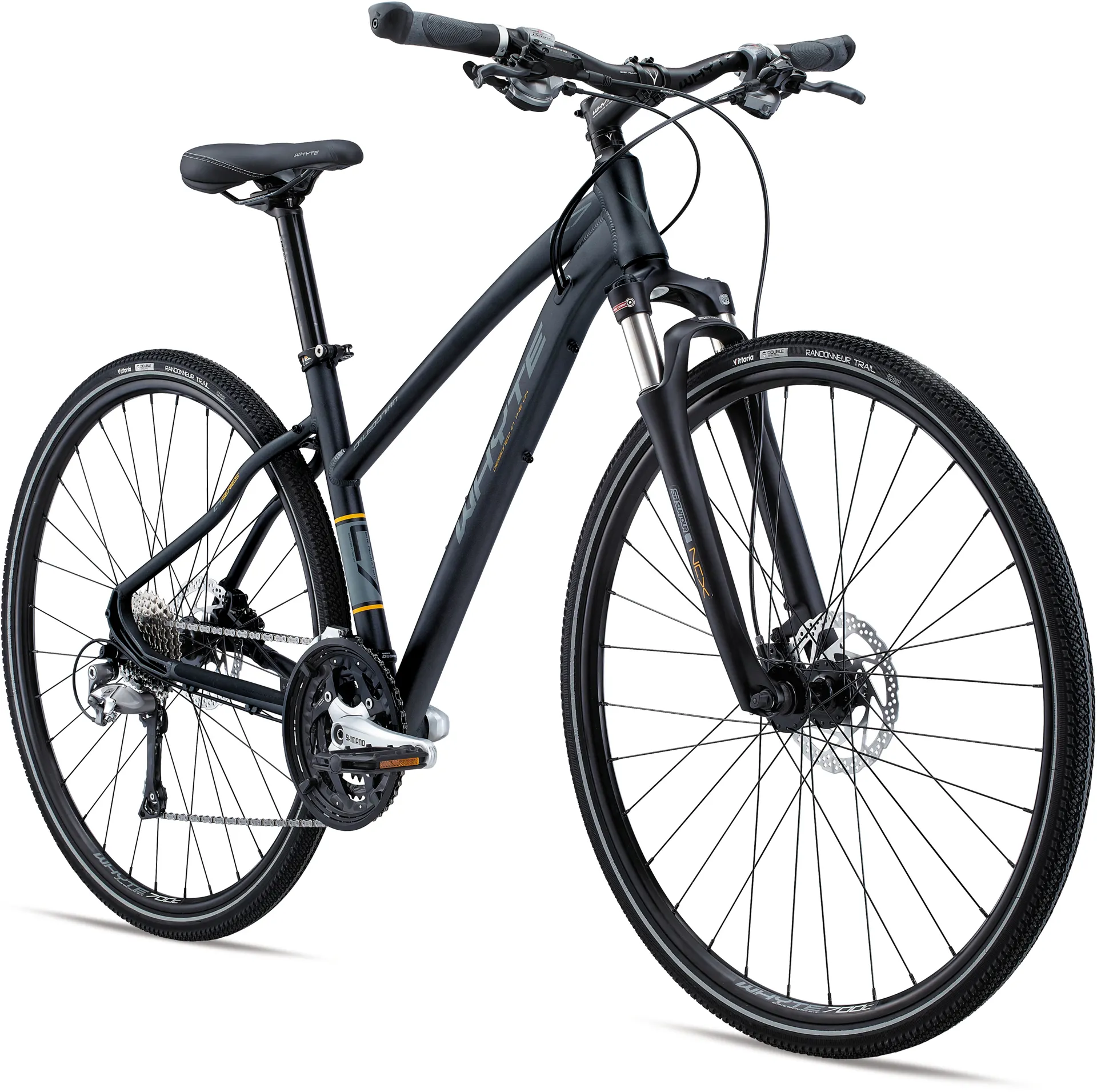 With wide ratio gearing taken from Shimano’s rugged mountain bike line and high quality Vittoria trail tyres, the Whyte Caledonian Womens Hybrid Bike is primed for a big adventure.