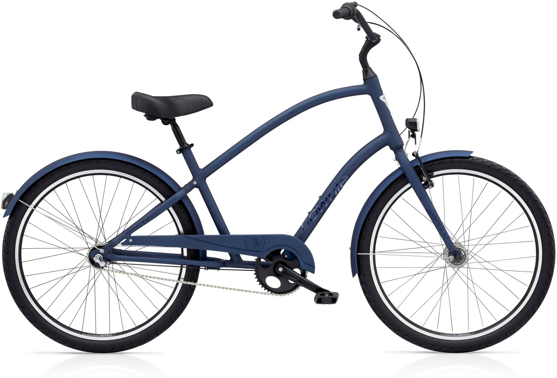 Enjoy all the advantages of Townie’s design, comfort, control, efficiency and a wide view of the road. Featuring a Shimano Nexus 3-speed internal hub that makes shifting as easy as a twist-of-the-wrist. The gearing is protected inside the rear hub, so there’s virtually no maintenance required to keep shifting smoothly. The Townie® Original 3i EQ comes fully equipped with Hub Dynamo powered front and rear bright LED lights and painted fenders to protect from the elements.