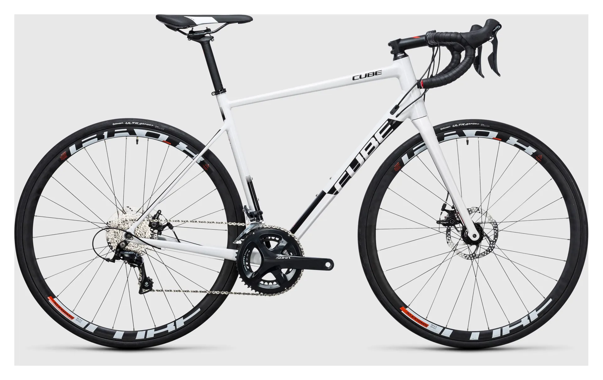The Cube Attain Pro stakes its claim as a peerless fitness and training bike by cutting no corners in its specification. Shimano's Sora groupset - including 18 gears and the brake system - guarantees precise gear changes, safe stopping and long-term performance. The compact chainset features 50 and 34 tooth chainrings and drives the rear wheel via a 11-32 cassette. High quality CUBE RA 0.8 Disc wheels shod with Continental Ultra Sport 2 racing tyres deliver high levels of grip and low rolling resistance.