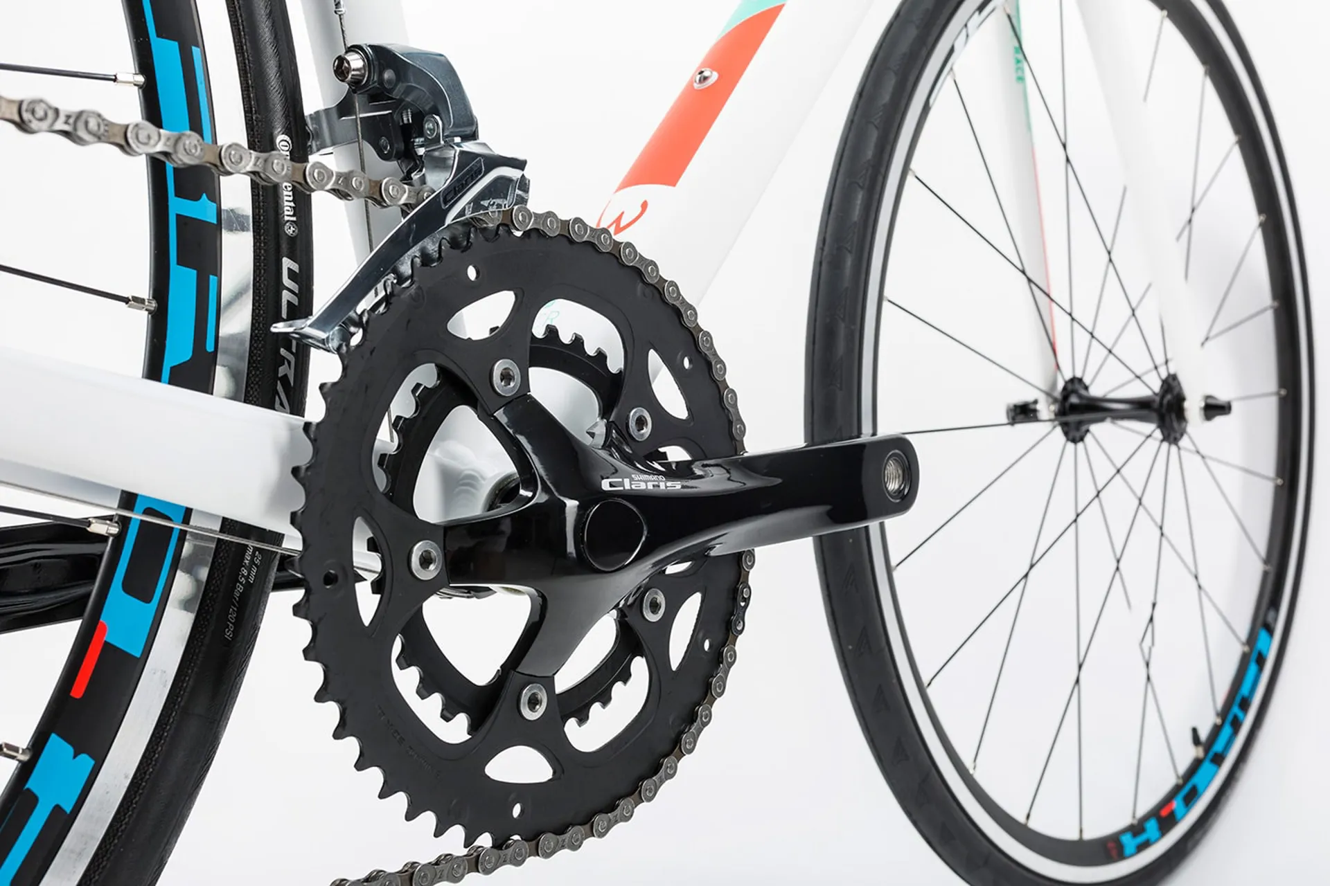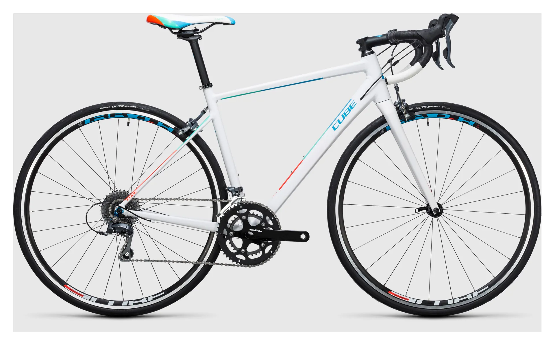 Ultimate versatility: with a complete Shimano Claris 16 speed transmission and brakeset precise gear changes, reliable braking and long-term durability are the least you can expect. Cube have chosen a compact double chainset (50/34) and wide-ratio 12-32 tooth cassette to make even the steepest climbs seem less daunting, without sacrificing speed on the flat. CUBE wheels, built in with Swiss DT spokes and CUBE rims and fitted with Continental Ultra Sport tyres, are another highlight in this price bracket. They've even included a CUBE cockpit setup and WLS saddle to increase rider comfort.