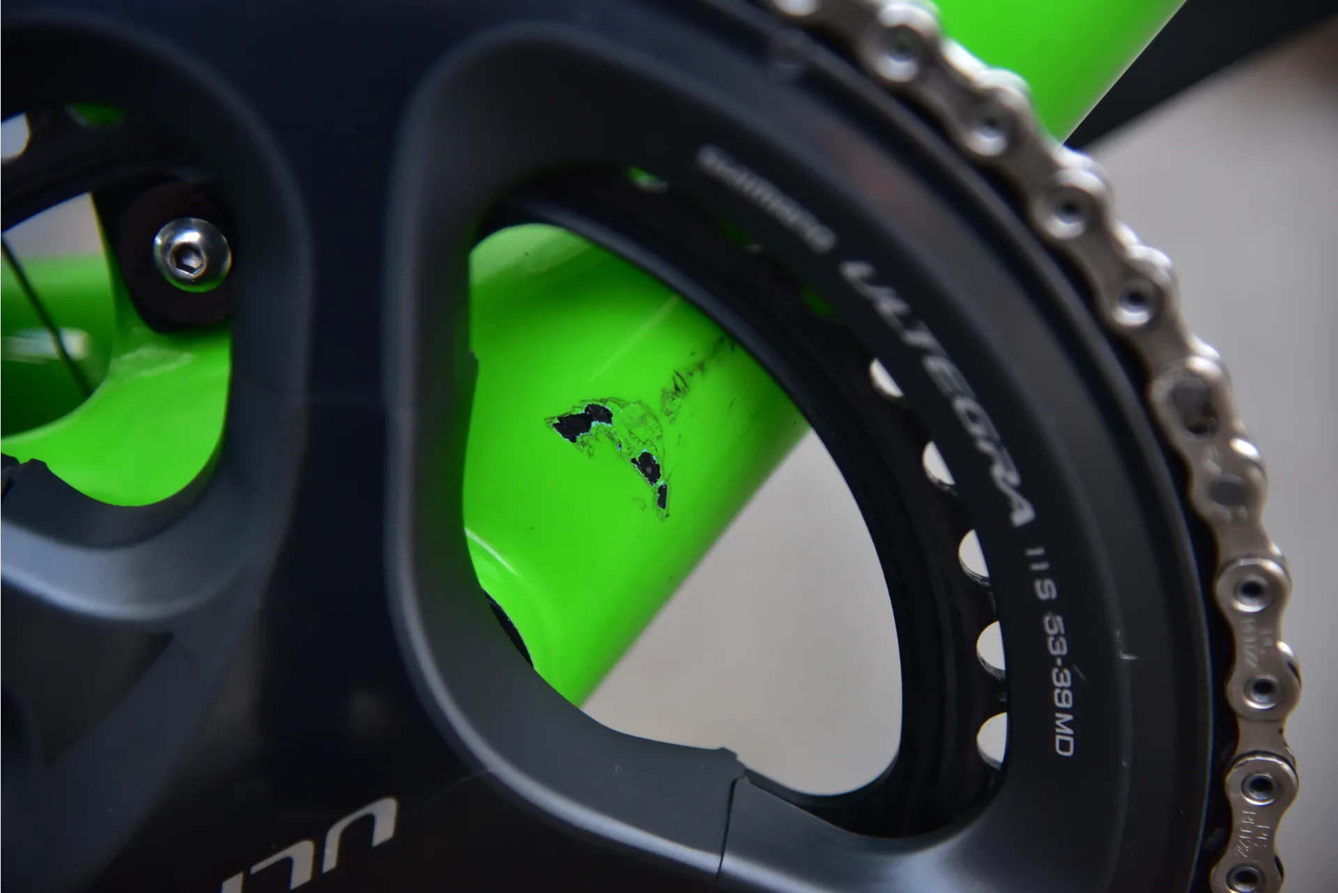 Damage Details Scratches on the head tube, forks, top tube and chain stays. Some chips on the head tube. Scratched face plate on lever.