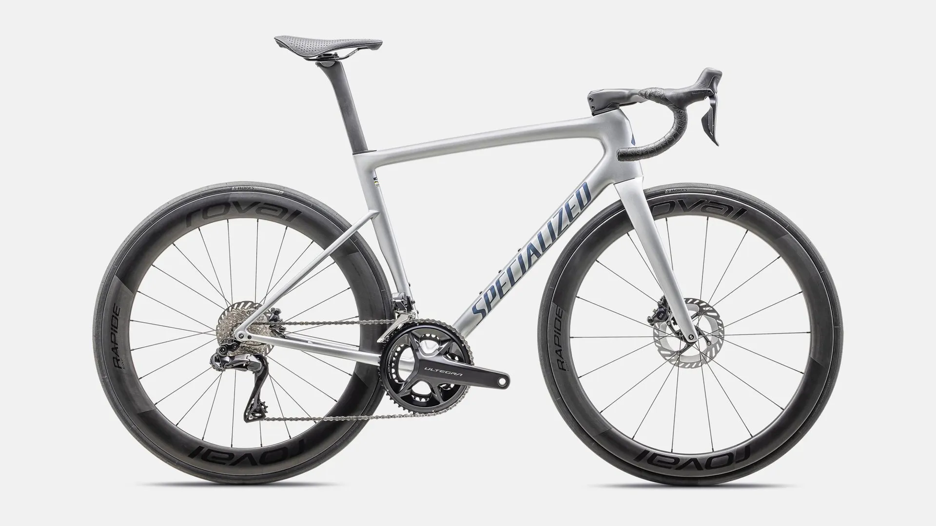 Specialized Tarmac SL8 Pro Ultegra Di2 Road Bike 2025 Gloss Liquid Silver/Satin Blue Pearl Over Black Liquid Metal