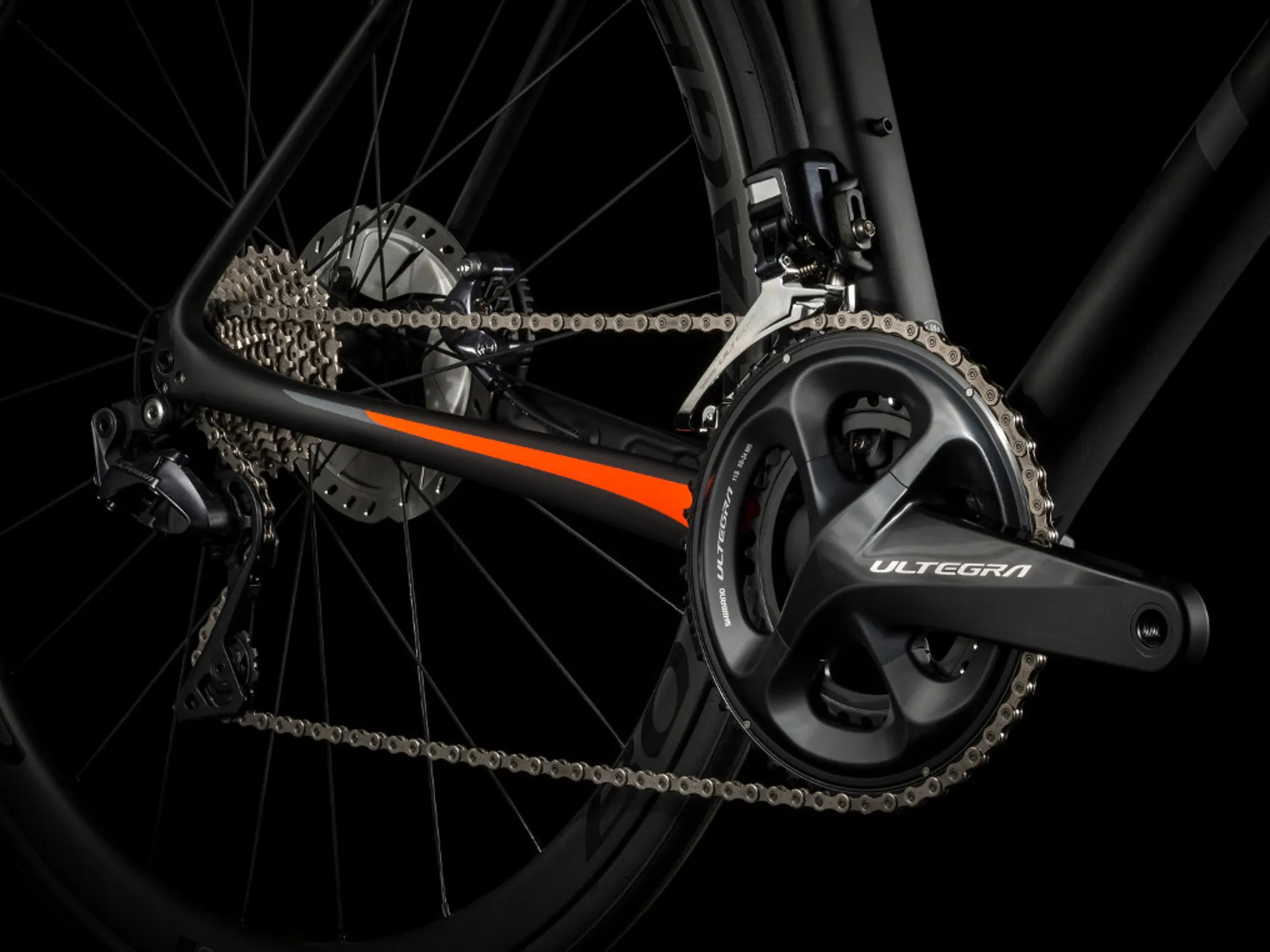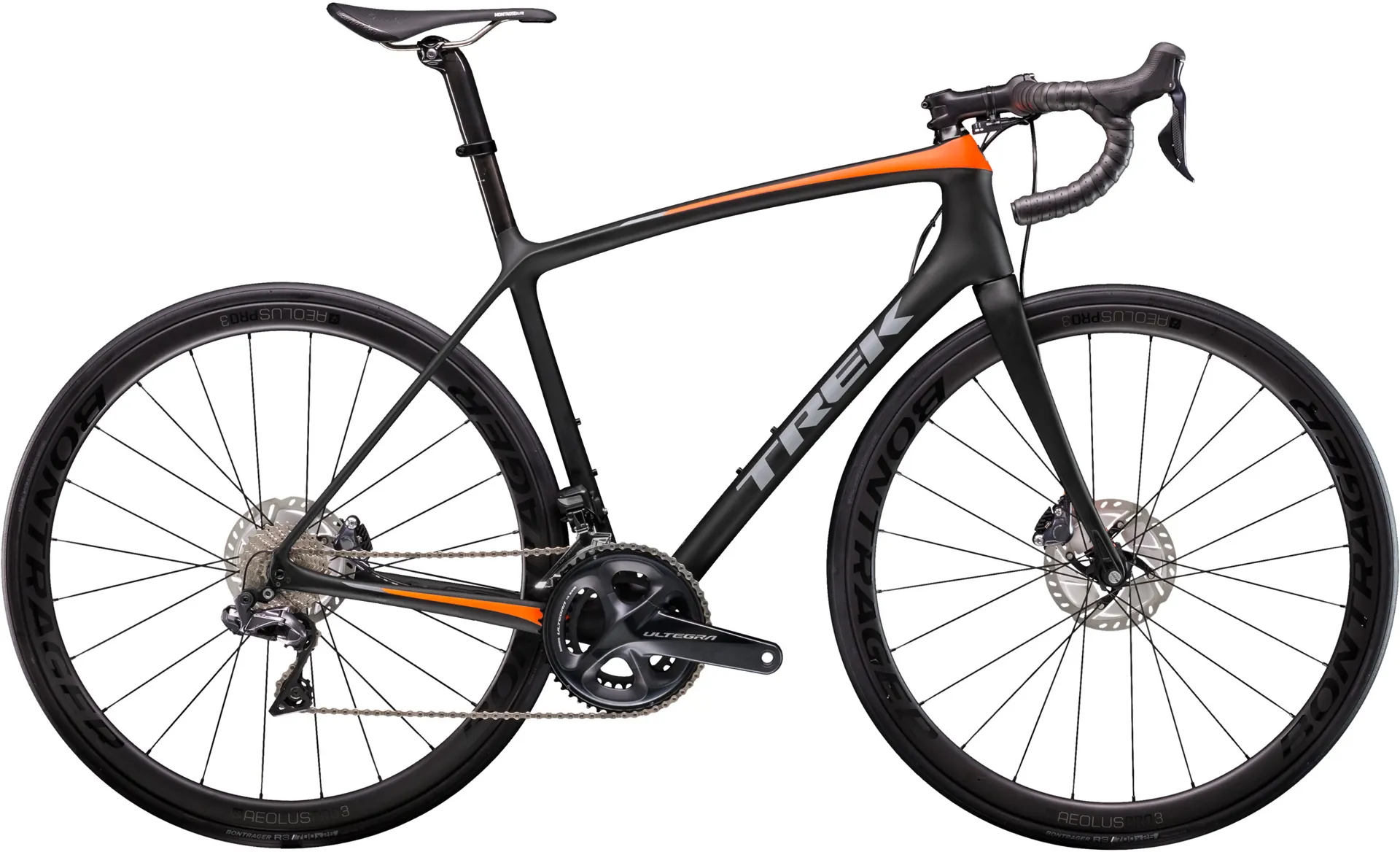 Technology highlights include the lightest 700 Series OCLV Carbon road frame Trek have ever made, front and rear 12mm thru axles, a full 2x11 Shimano Ultegra Di2 electronic drivetrain, Bontrager Aeolus Pro 3 carbon wheels, Shimano Ultegra flat mount hydraulic disc brakes and a Bontrager Pro IsoCore carbon handlebar.