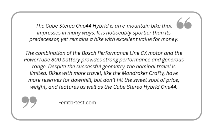 ONE44 is designed to be a versatile trail electric mountain bike, blending efficient climbing and everyday usability. Where the ONE77 takes a more aggressive role as an enduro focused electric MTB, built to handle steep descents. By separating these roles, Cube ensures each bike excels in its intended environment, as they both stand different purposes.