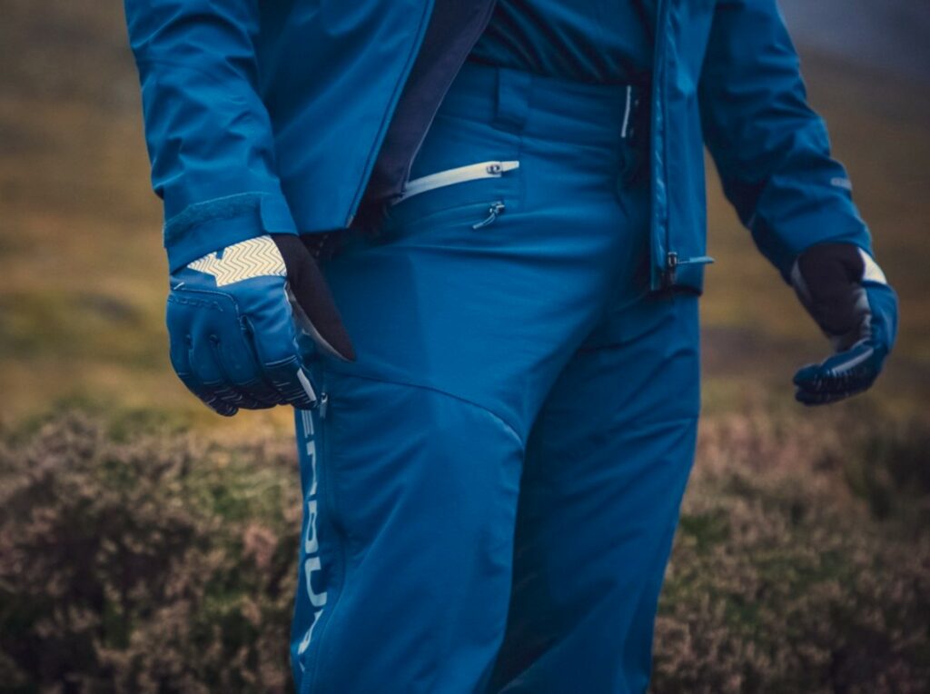 Waterproofing is the process of making something resistant to water penetration. It does this by creating a barrier on the surface that ultimately protects against water damage. The most effective method for high-performance clothing is a membrane laminated to the fabric and it’s microscopic pores block water droplets from the outside whilst allowing the water vapour from the inside to escape. In a less complex explanation, it’s purpose is to keep you dry.