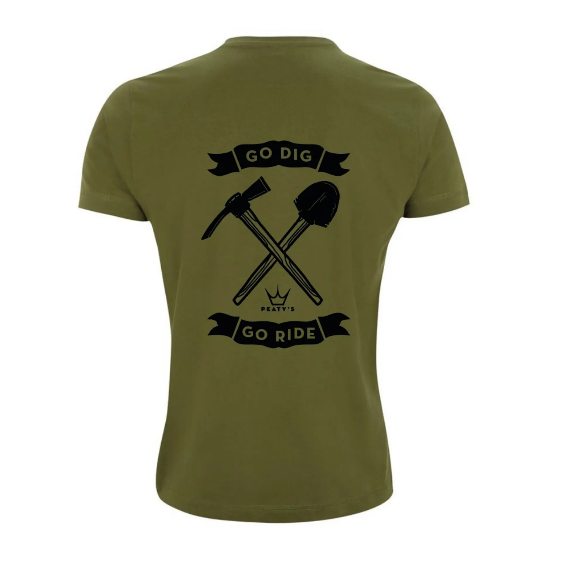 • Small Peaty's logo on the front chest, large Go Dig Go Ride printed graphic on the back.