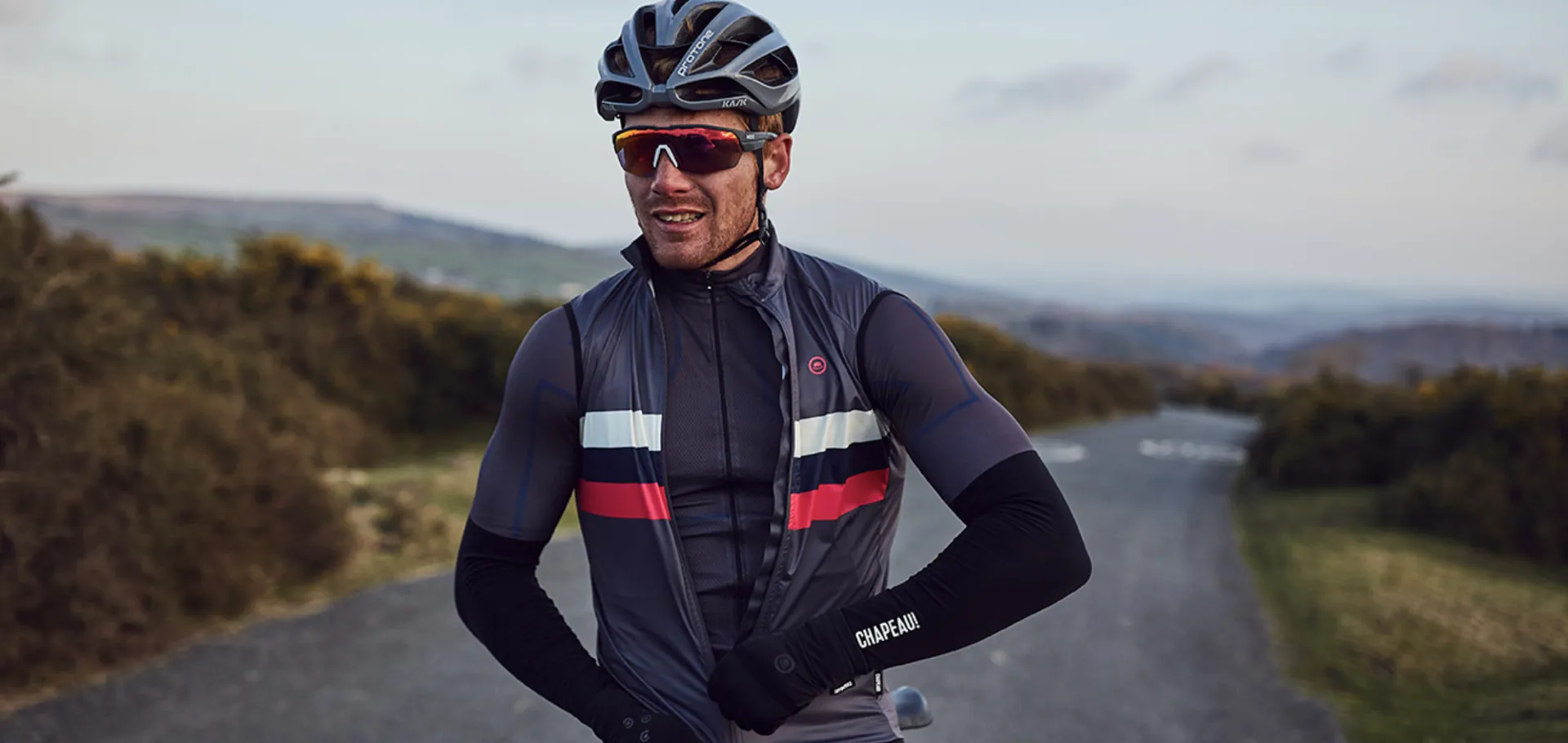 The Club Gilet is, like many of Chapeau's garments, designed to work all year round as part of your layering system. It can be worn as an outer layer over a short or long sleeve jersey and can pack down into a back pocket when it’s not needed. It’s designed as an outer layer but is slim enough to fit underneath a warmer jacket if required.