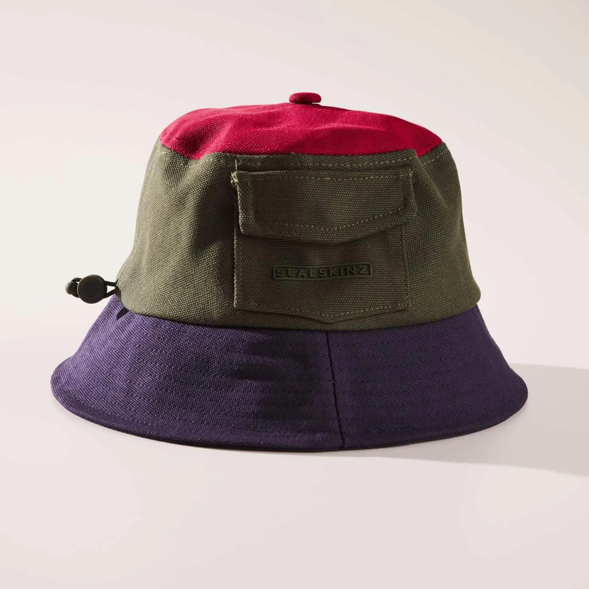 SealSkinz Lynford Waterproof Canvas Bucket Hat Olive/Red/Navy