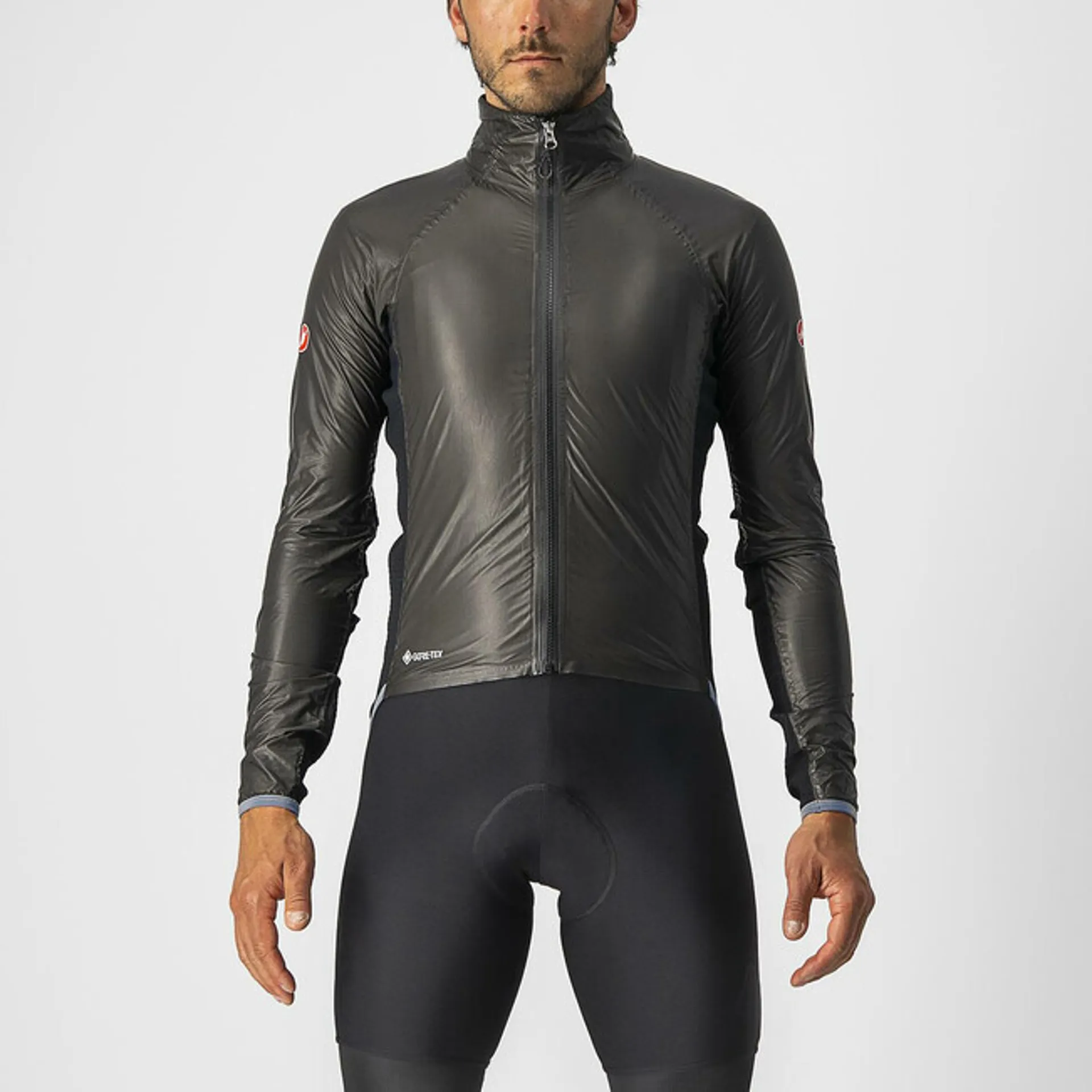 The Castelli Idro Pro 3 Jacket is the ultimate waterproof cycling jacket. Light, packable, highly breathable, durably waterproof, and aero fitting. This is the first piece that brings all those features together into a jacket made for the rider who has to (or choses to) ride in any weather conditions. The unbelievably light GORE-TEX® SHAKEDRY™ fabric lets Castelli make waterproof jackets that are lighter than ever while also being more breathable than ever. This miracle fabric has no stretch, though, so they've combined it with GORE-TEX® Topo inserts to give a close fit and extreme packability to a jacket that’s fully protective for all-day riding in the rain. It has two external pockets so you don’t have to unzip to reach your jersey pockets. It has a longer tail to shield you from the spray coming off your back wheel. And they've given it reflectivity for safety. Compared to the Idro 3 Jacket, this is more of a workhorse jacket. It’s made for the rider who leaves his house for an all-day ride in the rain, for the rider whose jacket is a necessity and not a piece that stays in a pocket until it’s needed.