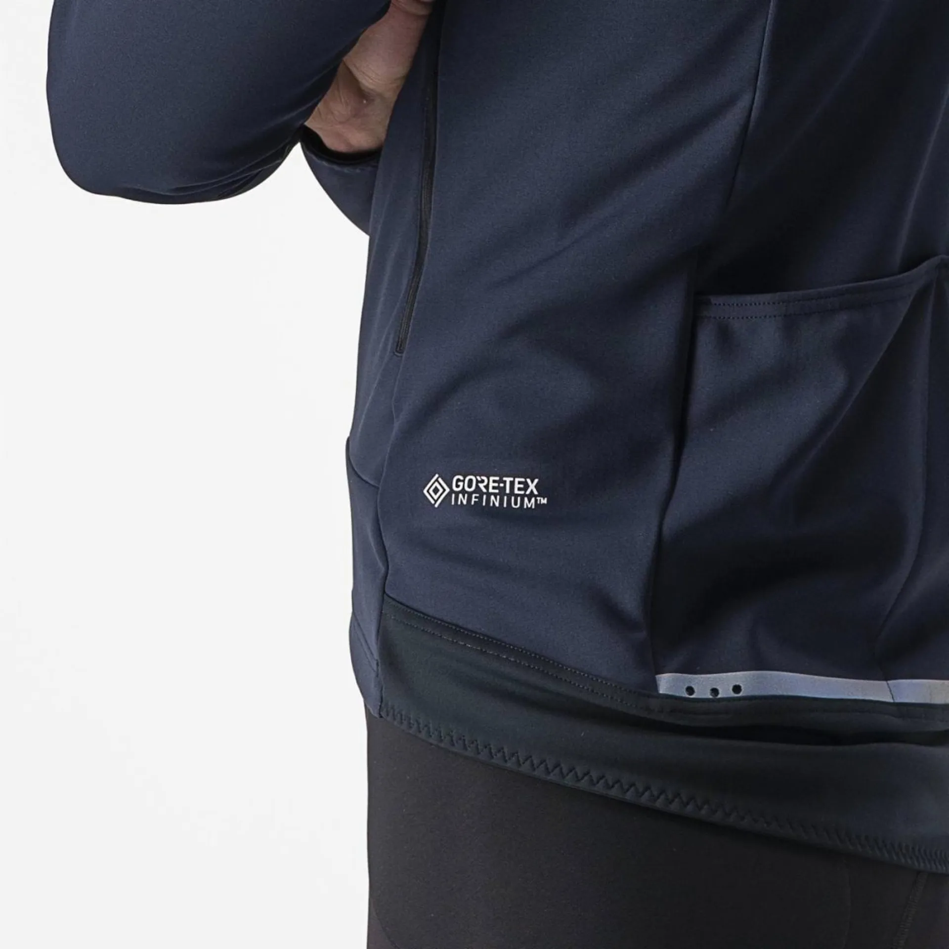 • Castelli-exclusive GORE-TEX INFINIUM™ WINDSTOPPER® 205 Warm brushed water-resistant fabric on front-facing surfaces