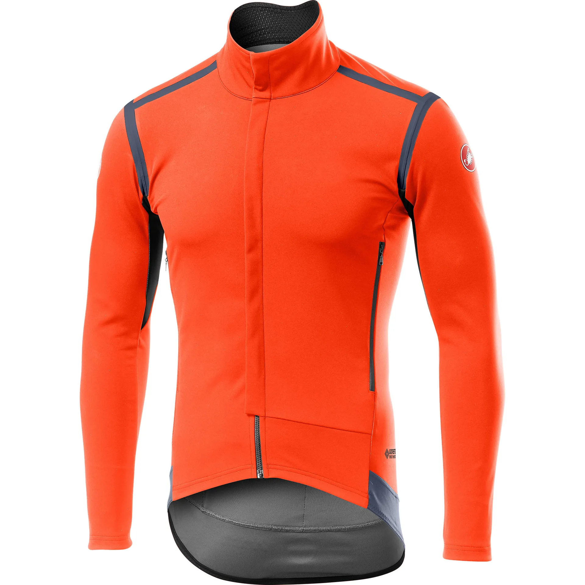 • Castelli exclusive GORE-TEX INFINIUM™ WINDSTOPPER® 205 Warm brushed water-resistant fabric on front-facing surfaces