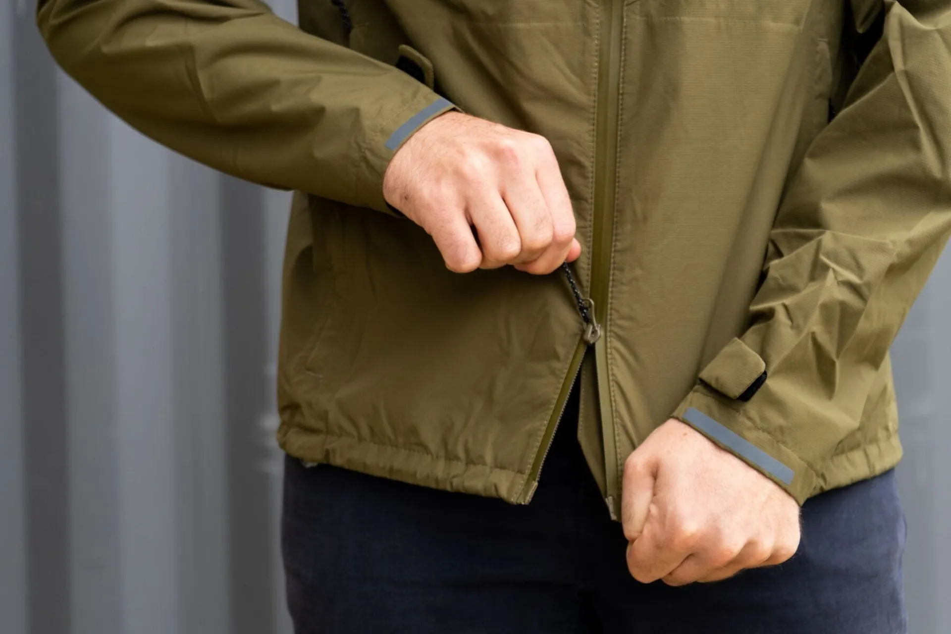 • Reflective on the cuffs and lower hem for added visibility to passing motorists