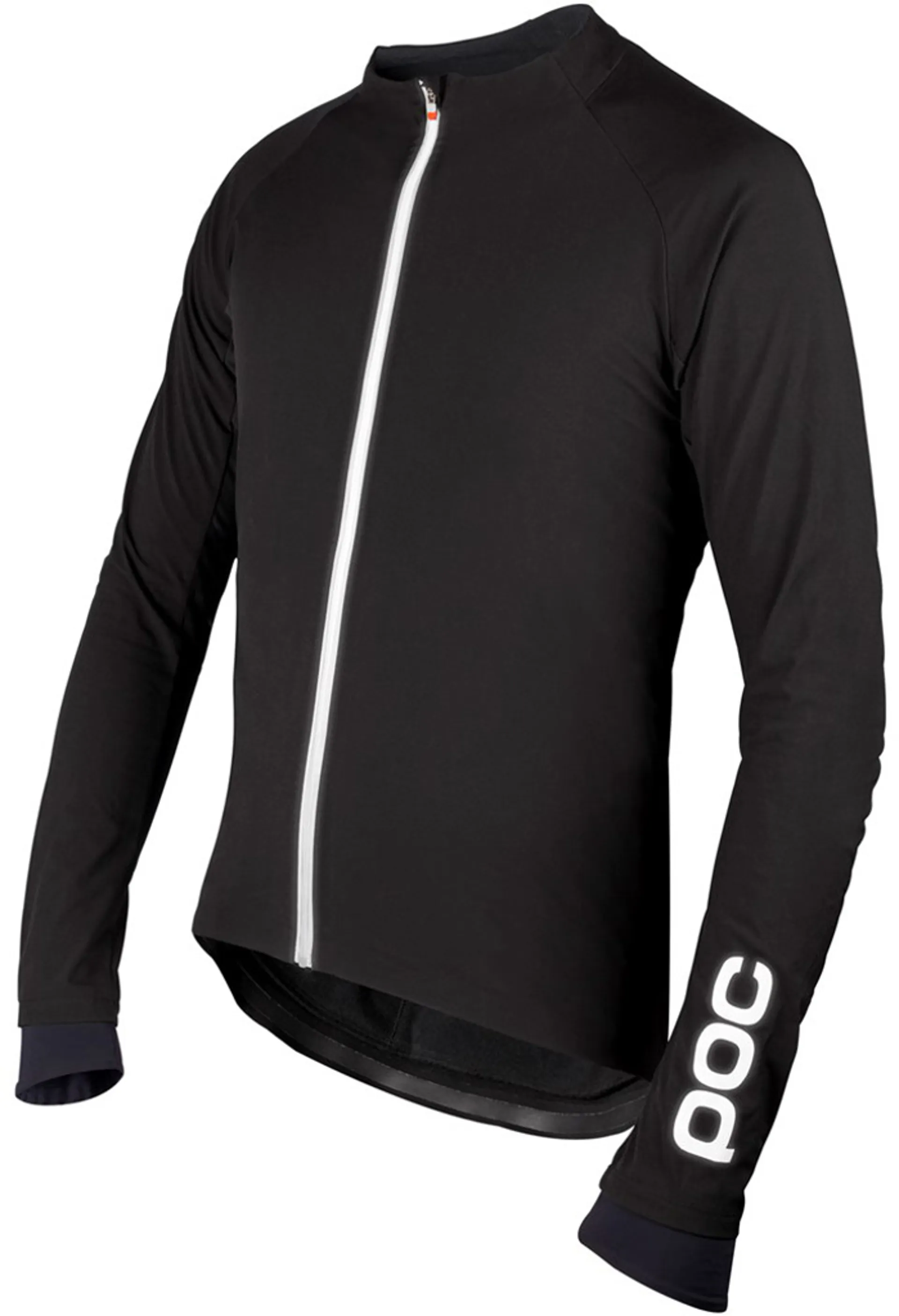 The back and shoulders of this POC wind proof jacket offer optimized flexibility, comfort and warmth on every ride thanks to the 4 way stretch fabric with brushed inside.  The laser cut cuffs further increase comfort and the silicon grips ensure they stay securely in place.  The reflective detail and logo on the back offer increased visibility.