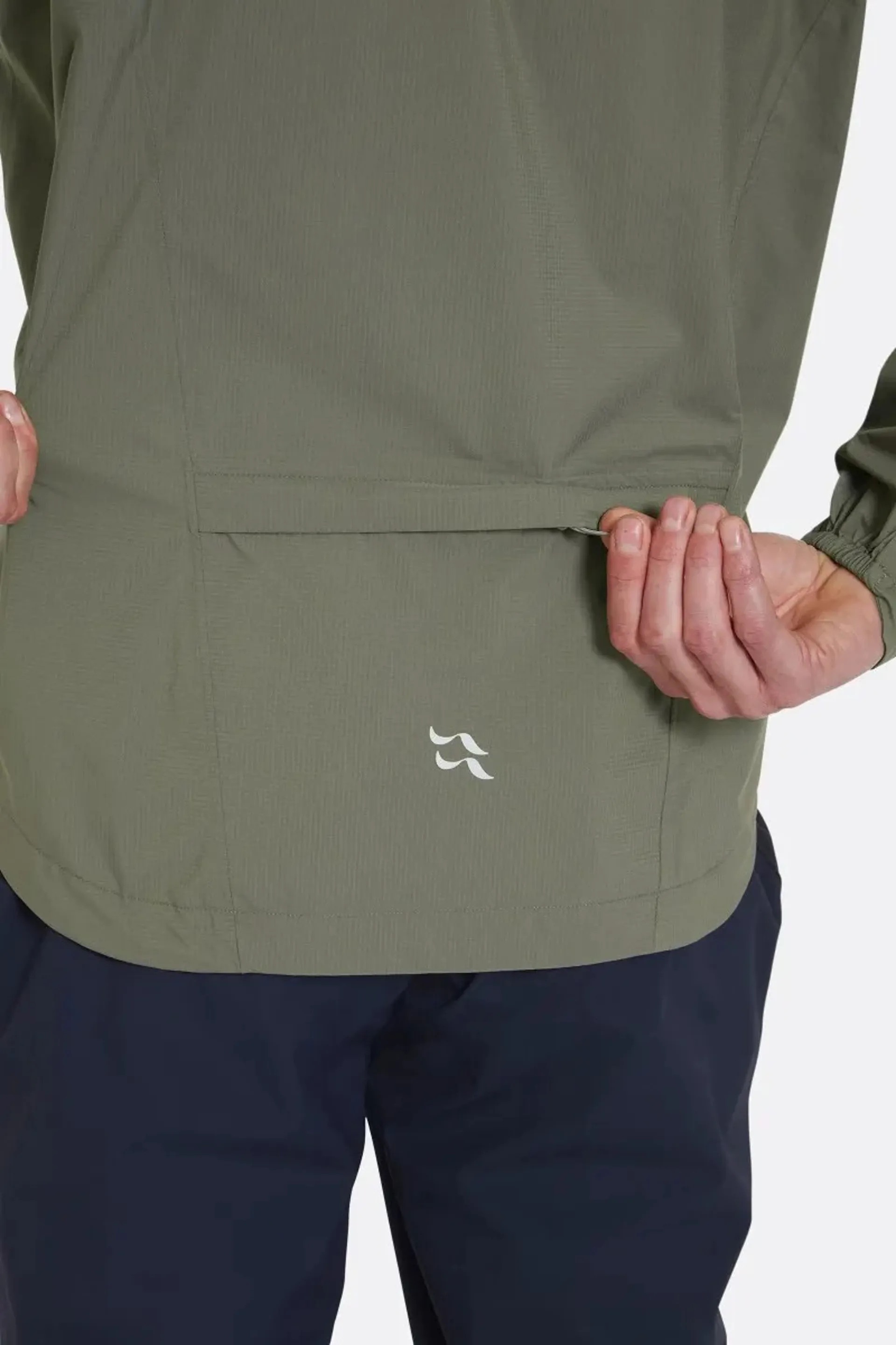 • Dropped rear hem with branded silicone grip helps keep jacket in place while riding
