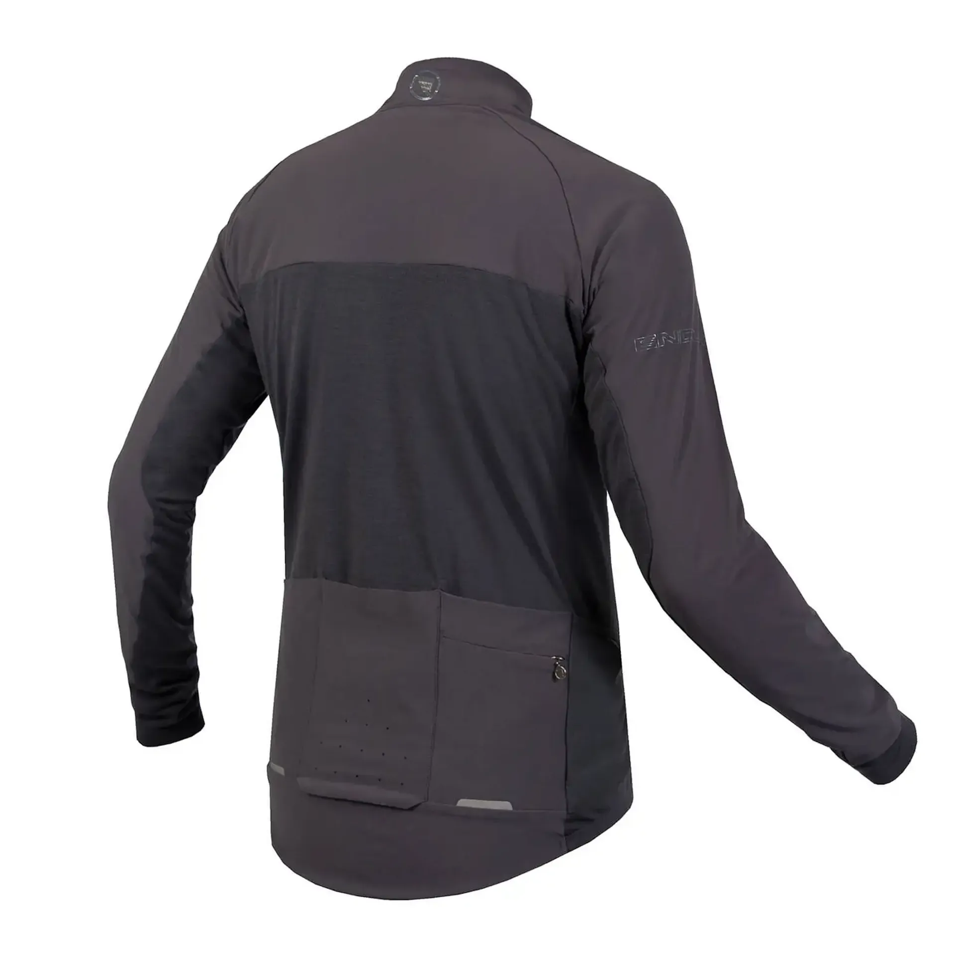 Multi Fabric Construction: A mid-weight merino blend fabric in the main body provides excellent temperature regulation and odour control. A lightweight, stretch woven overlay across the shoulders, upper chest and rear pockets delivers additional wind and shower/ spray protection in these critical areas.