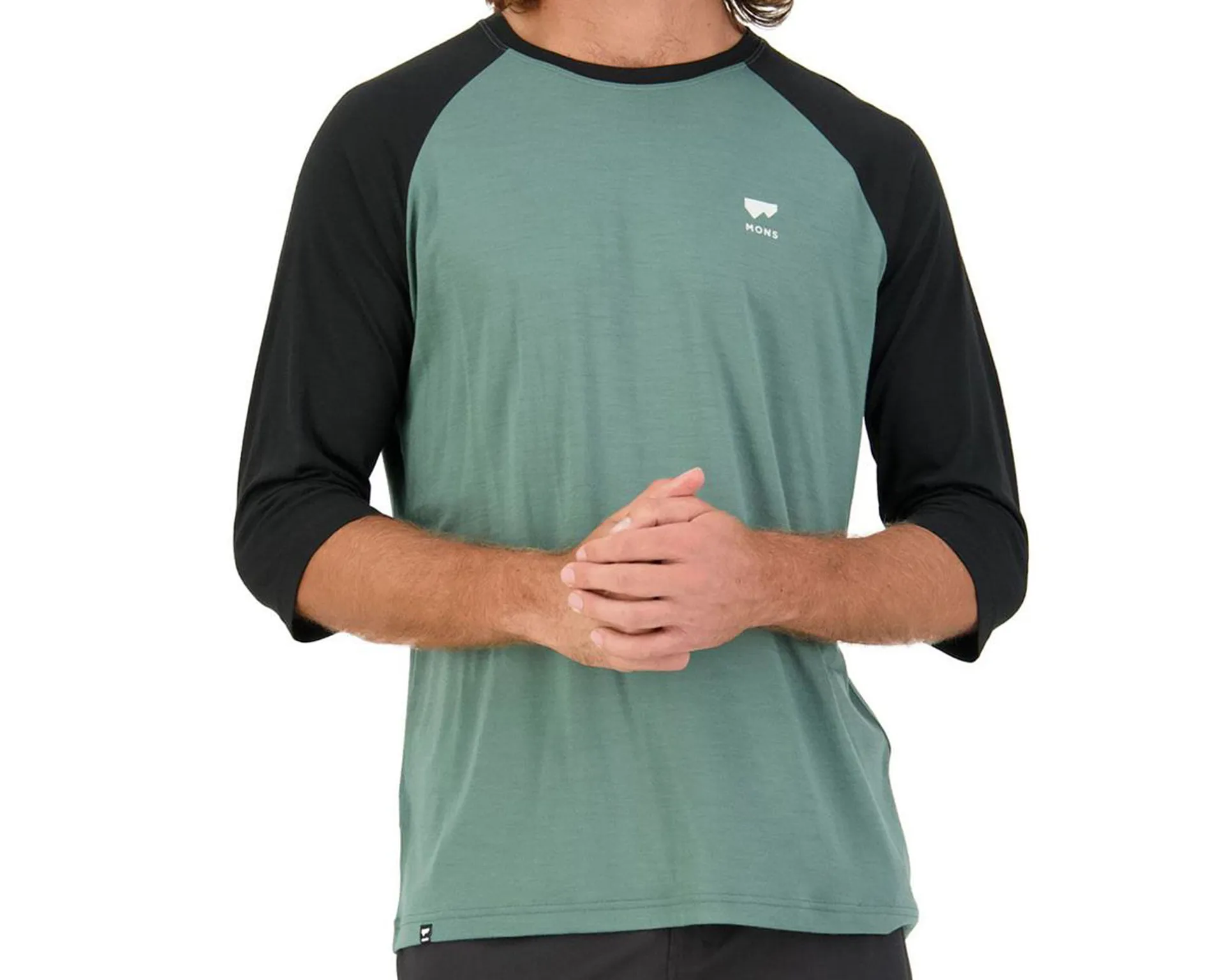Mons Royale Mens Tarn Merino Shift Raglan 3/4 Sleeve Jersey Sage Features