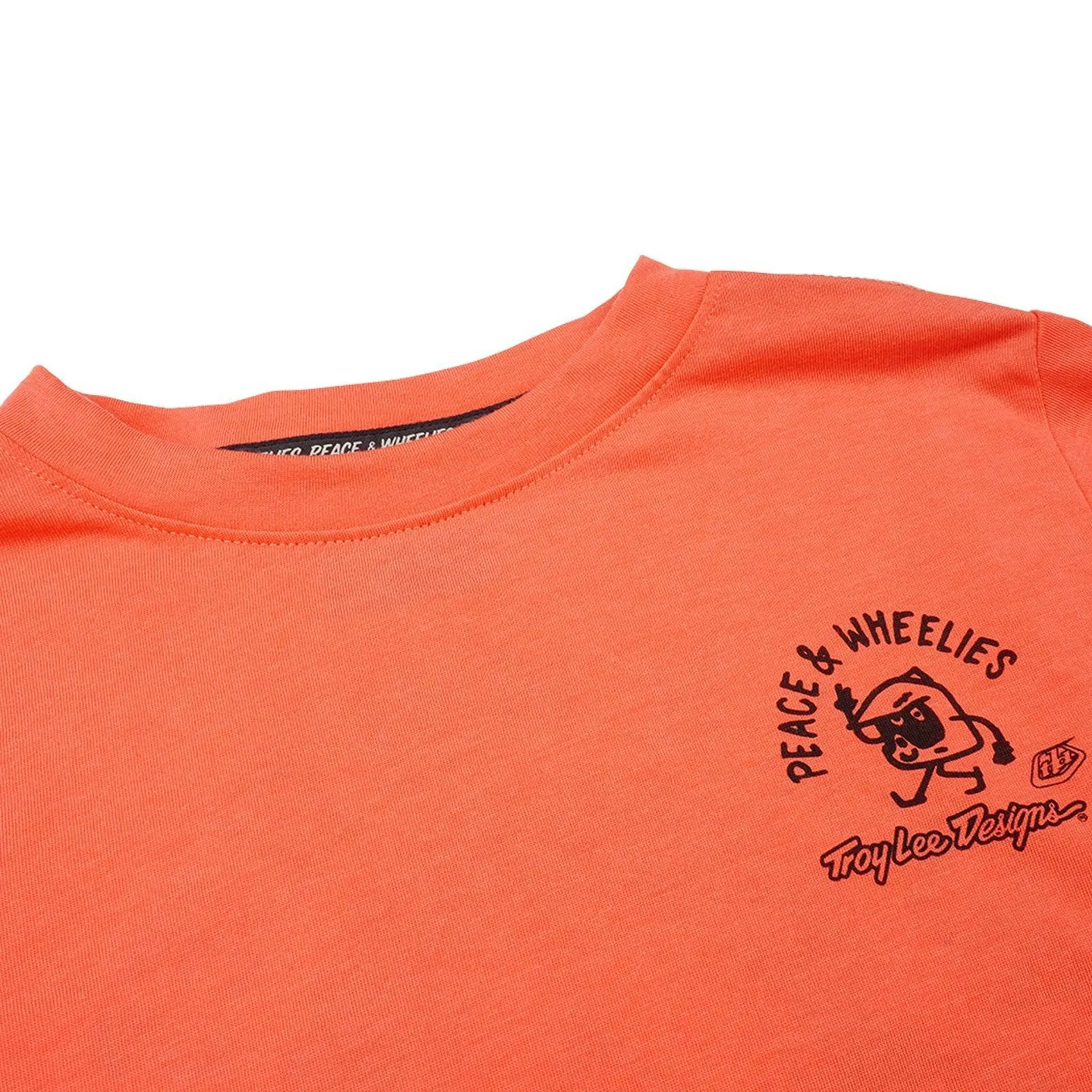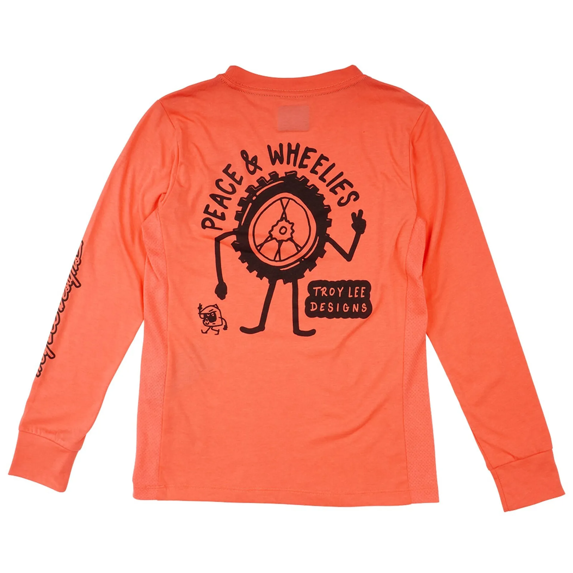 The Skyline Ride Youth Long Sleeve Jersey, with its striking melon colour and fun Peace & Wheelies branding, is perfect for young riders who value comfort on all-day explorations.
