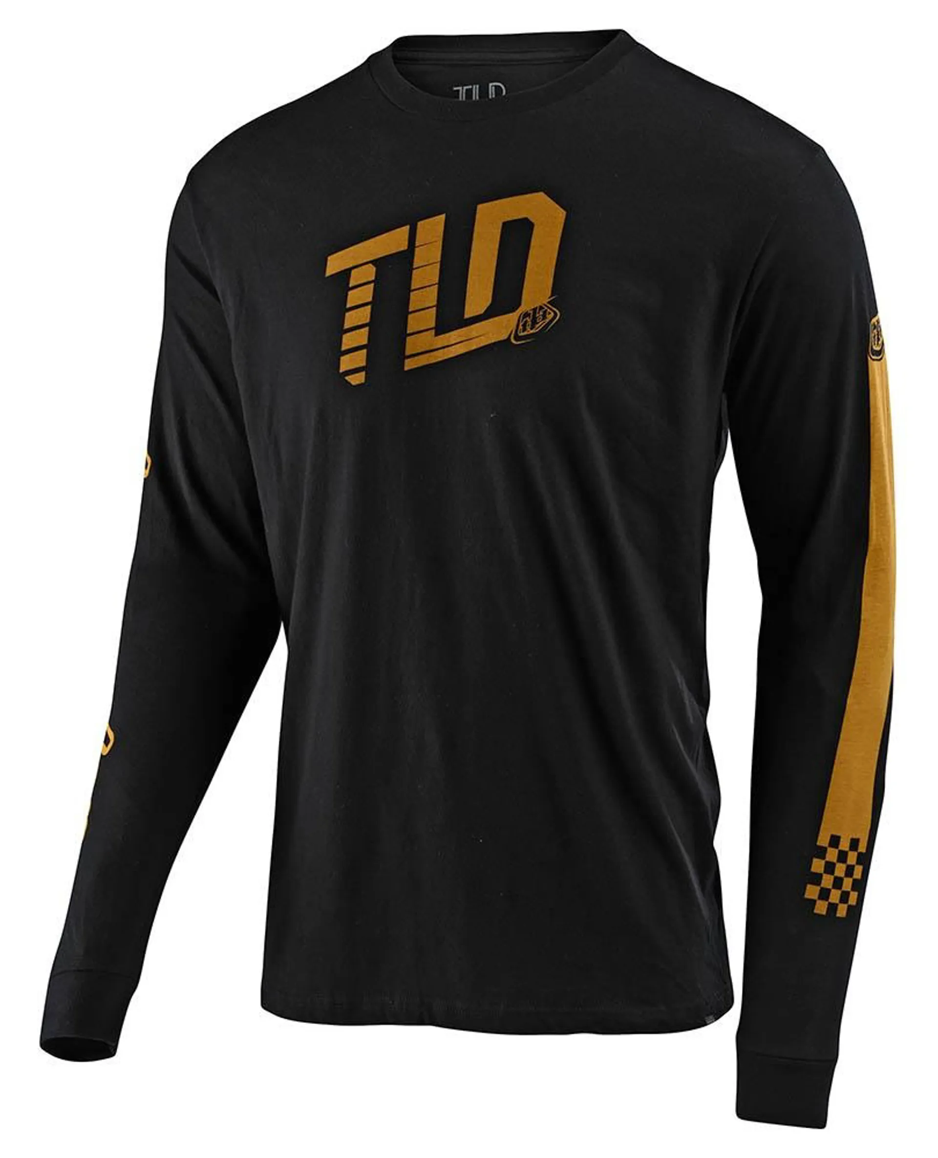 The Troy Lee Designs Trackside LS Tee has graphics look fast while standing still. Racing stripes down the sleeve end in the checkered flag, and isn’t that what we all want?
