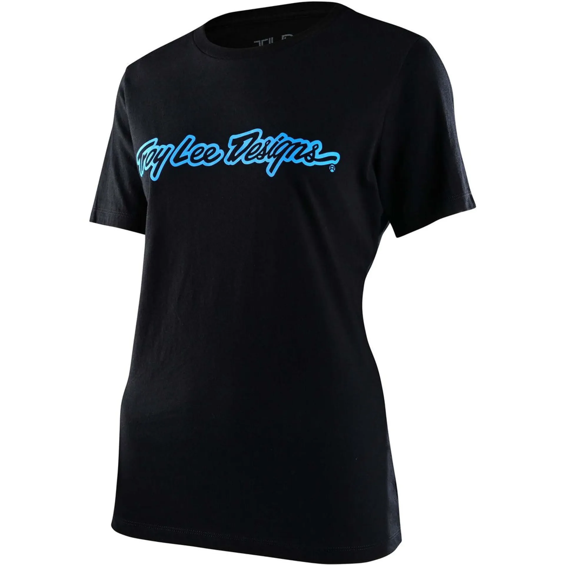 The Troy Lee Designs Women's Signature Short Sleeve T-Shirt / Black, available now at Leisure Lakes Bikes.