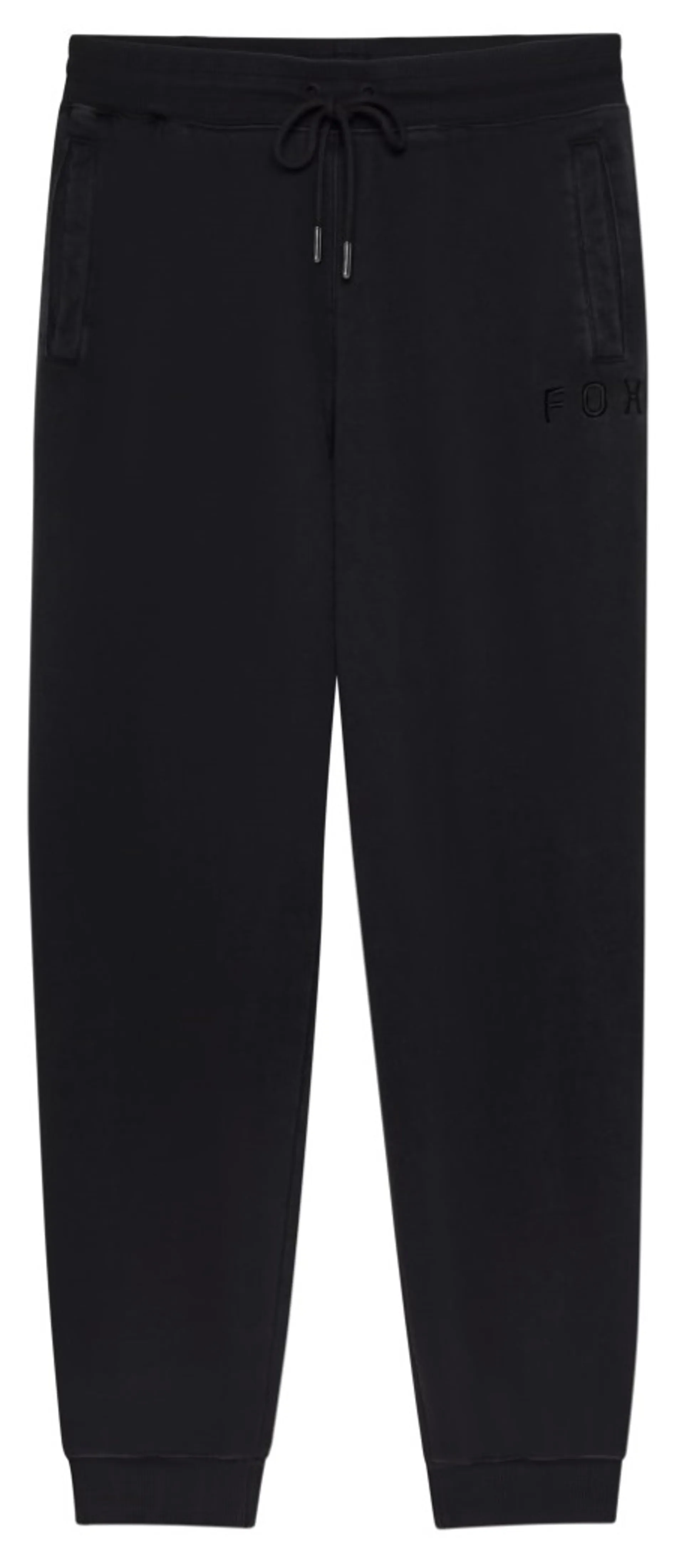 FOX Wordmark embroidery at WL leg under pocket opening. Netal eyelets and tubular drawcord with metal aglets.