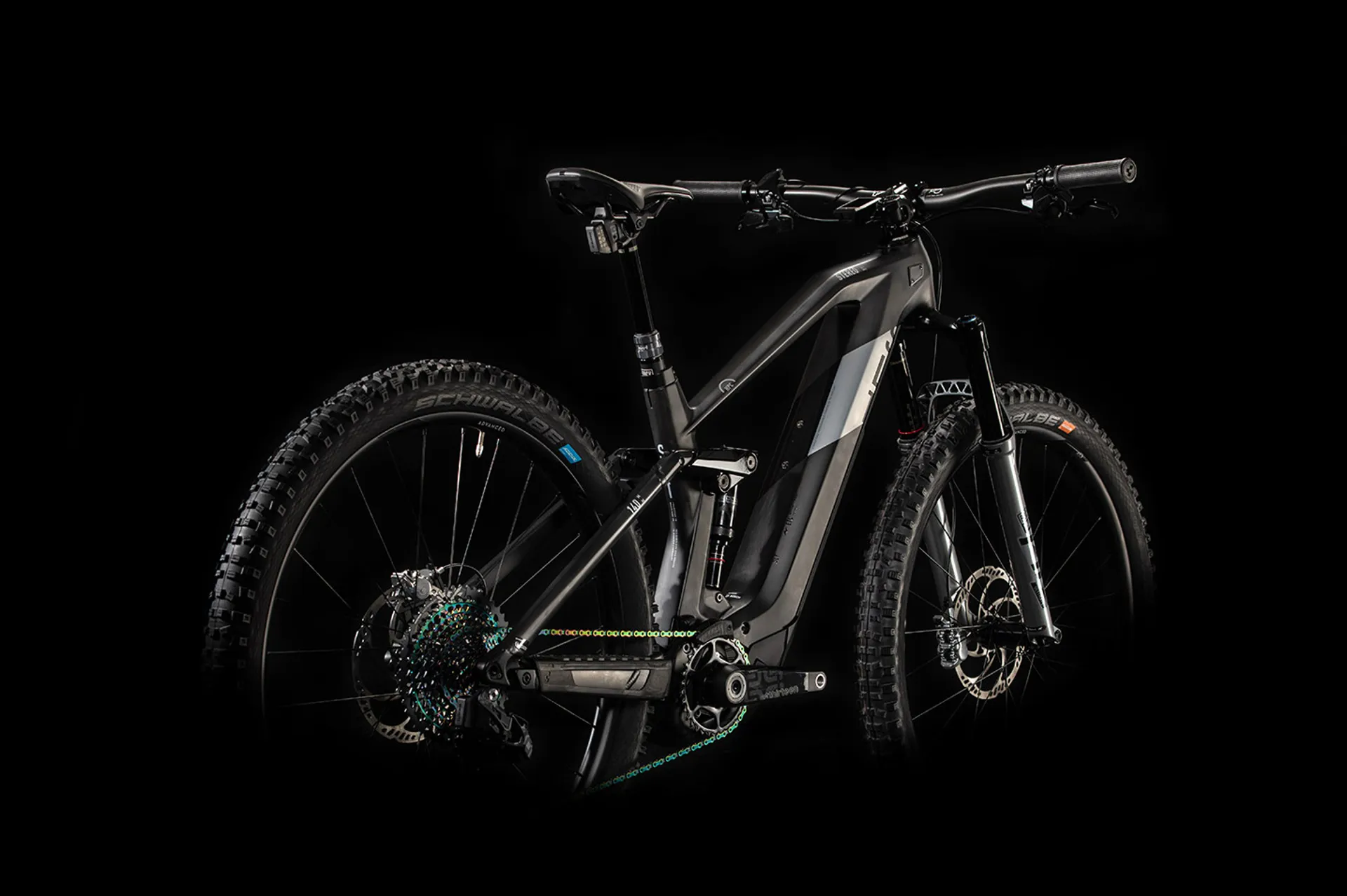 What is the biggest dream of a passionate e-bike developer? The requirement to design the very best of the best. With the new Stereo Hybrid 140 HPC SLT we present the impressive result. The ultimate expression of all-mountain performance in perfection - the most powerful 29er Bosch e-bike with 140 mm travel and an absolute technology fireworks display. Even technically demanding trails become the purest driving pleasure thanks to the towering, buttery RockShox Pike Ultimate fork and finely tuned, progressive RockShox Deluxe Ultimate Trunnion Mount mute. The light, robust and stiff Newman Advanced SL carbon wheels with a handy and comfortable 2. 6-inch Schwalbe Hans Dampf tires transfer the power of the new Bosch CX engine of the fourth generation extremely efficiently to the ground with the electronic Sram X01 Eagle AXS Wireless 12-speed gearshift. No matter how steep the ramp or the downhill, this bike is prepared for everything. Talking about downhill, you can count on the equally electronic and wireless RockShox Reverb AXS Dropper Post, the RaceFace Cockpit and the super powerful Magura MT Trail Carbon Disc Brakes with extra large 203mm discs for better cooling. But this bike has more to offer than a spec list that reads like the who-is-who of the two-wheeled world. Finally, the Stereo Hybrid 140 HPC SLT 29 also comes with a completely reworked all-mountain e-bike chassis with carbon main frame, revised kinematics and improved Agile Trail Geometry, for a rock solid handling in every driving situation therefore. We are also extremely proud of the Modular Battery System, whose cover is not only impact-resistant, dirt-repellent and water-repellent, but also elegantly conceals the lock. It is also quick and easy to remove at the push of a button and allows the use of the new 625 Wh Bosch battery for even more coverage. And best of all, it even leaves room for a bottle cage. This love down to the smallest detail makes all the difference and ensures that you can rely 100% on your Stereo Hybrid 140 HPC SLT 29. So you have your head free for the next challenge.