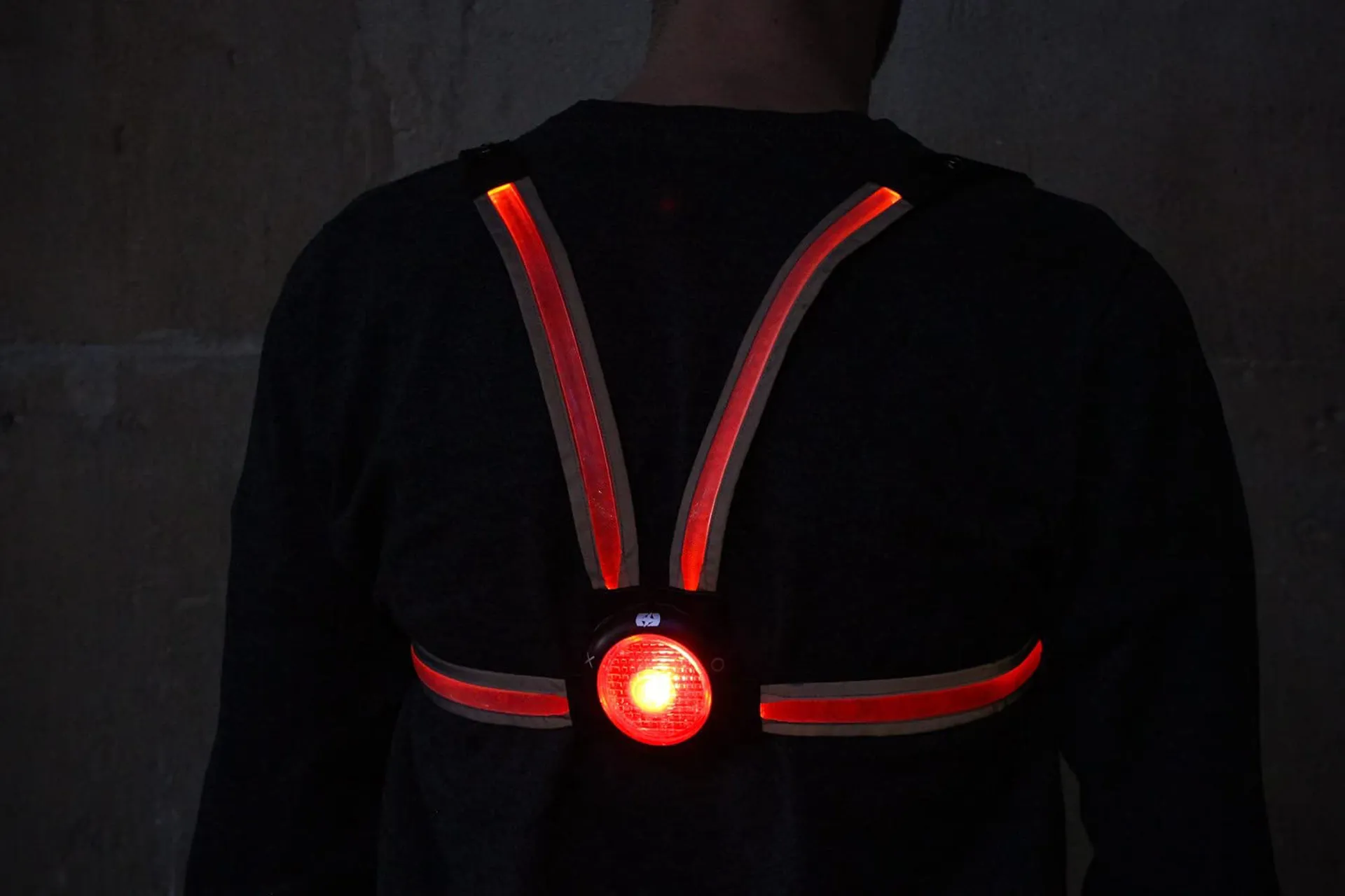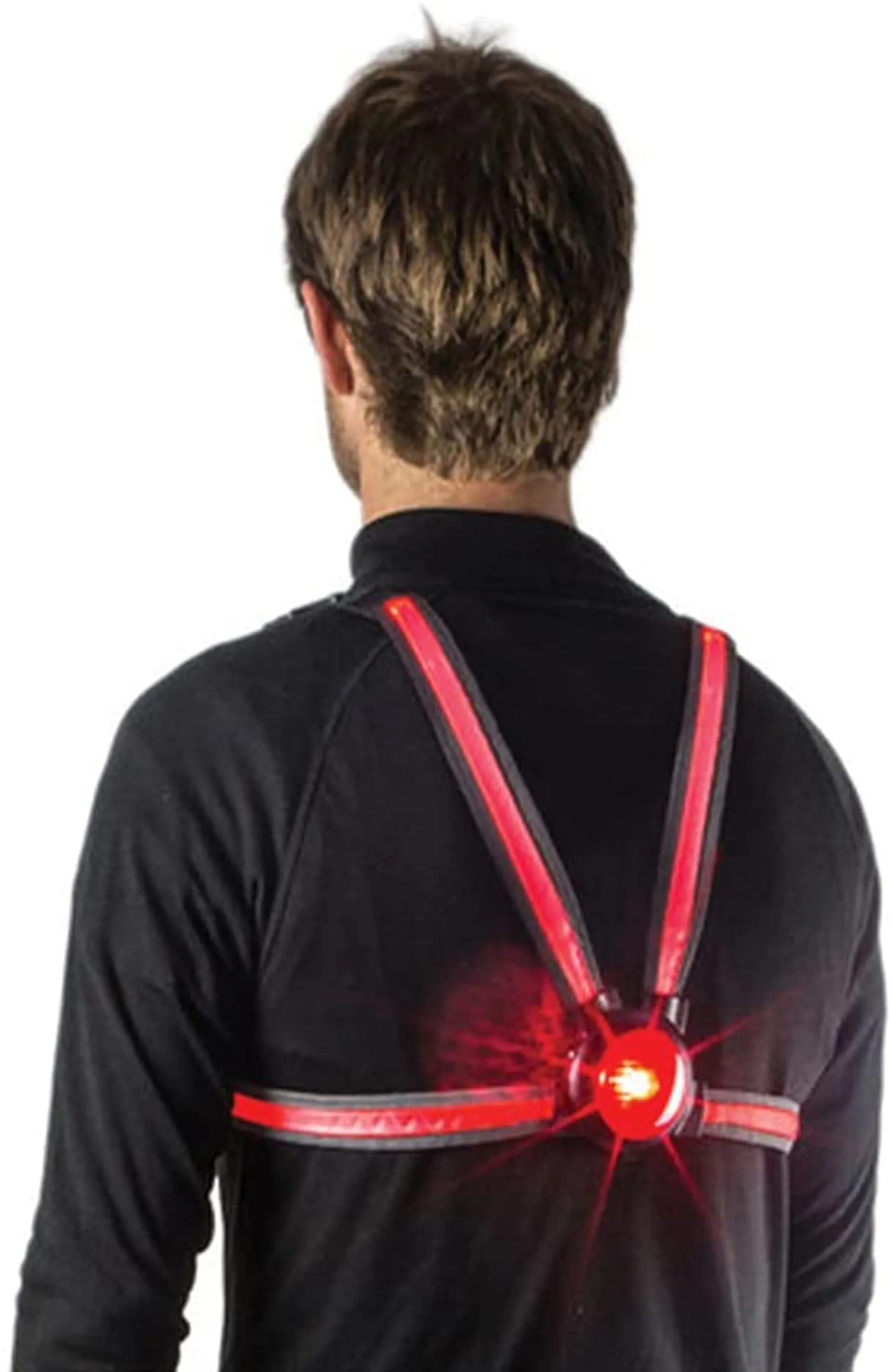 • 4 red fibre optic strap lights with 3 modes and highly visible silver reflective piping. USB rechargeable lithium battery & charge lead included